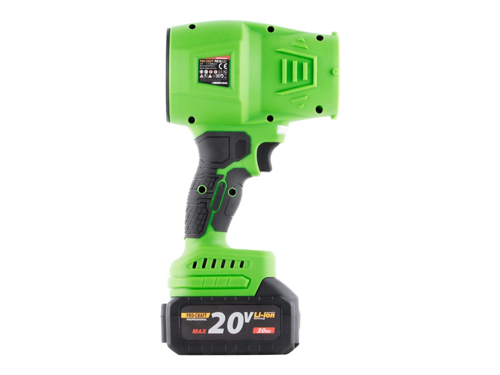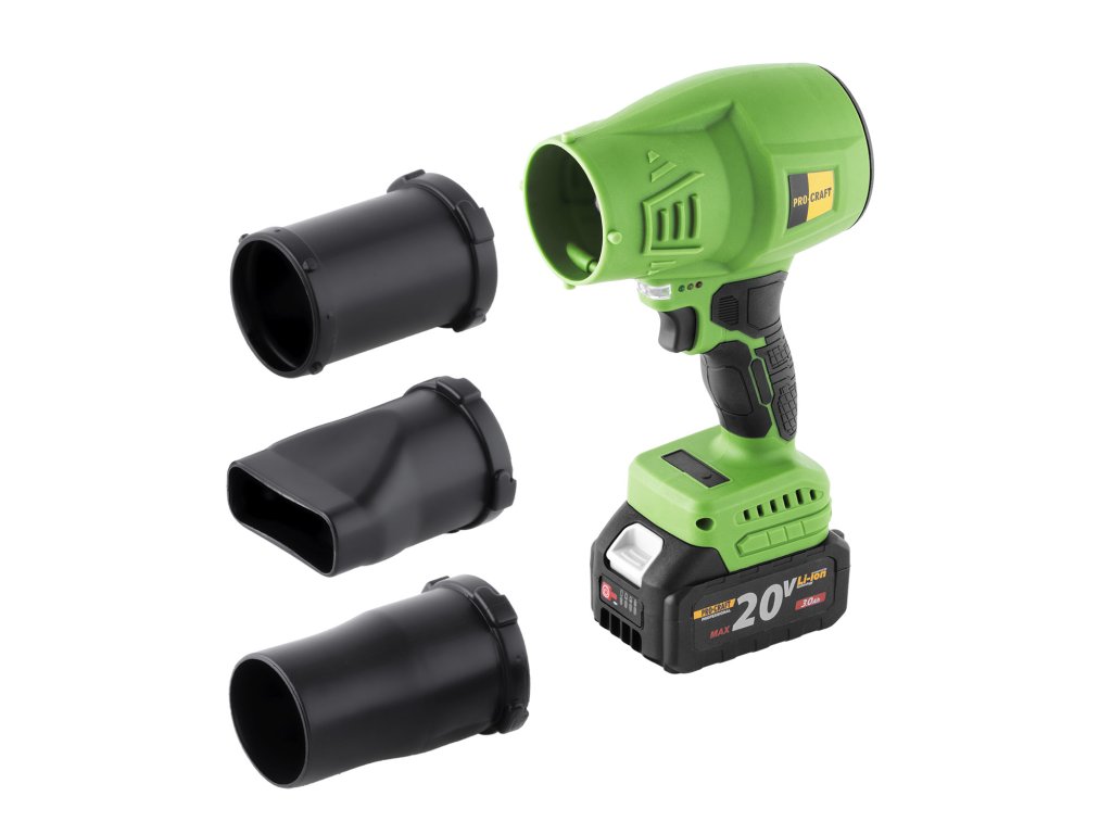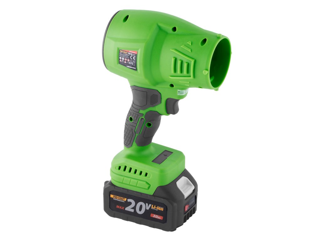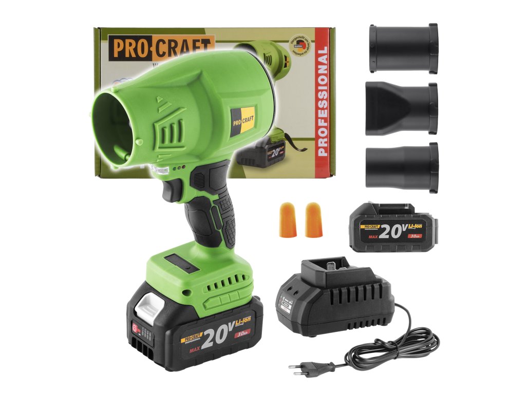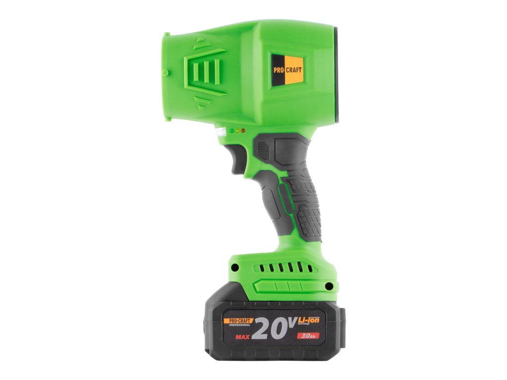 Aku fukar Procraft je praktický a výkonný pomocník pro úklid zahrady, dílny nebo dvora. Díky napájení z 20V akumulátoru nabízí naprostou volnost pohybu a umožňuje snadno odstraňovat listí, prach, piliny nebo drobný odpad z těžko dostupných míst. Otáčky (min.-1) 0-20000 Max. průtok vzduchu, m3/h 372 Max. rychlost vzduchu (km/h) 164 Hmotnost, 0,8 kg.