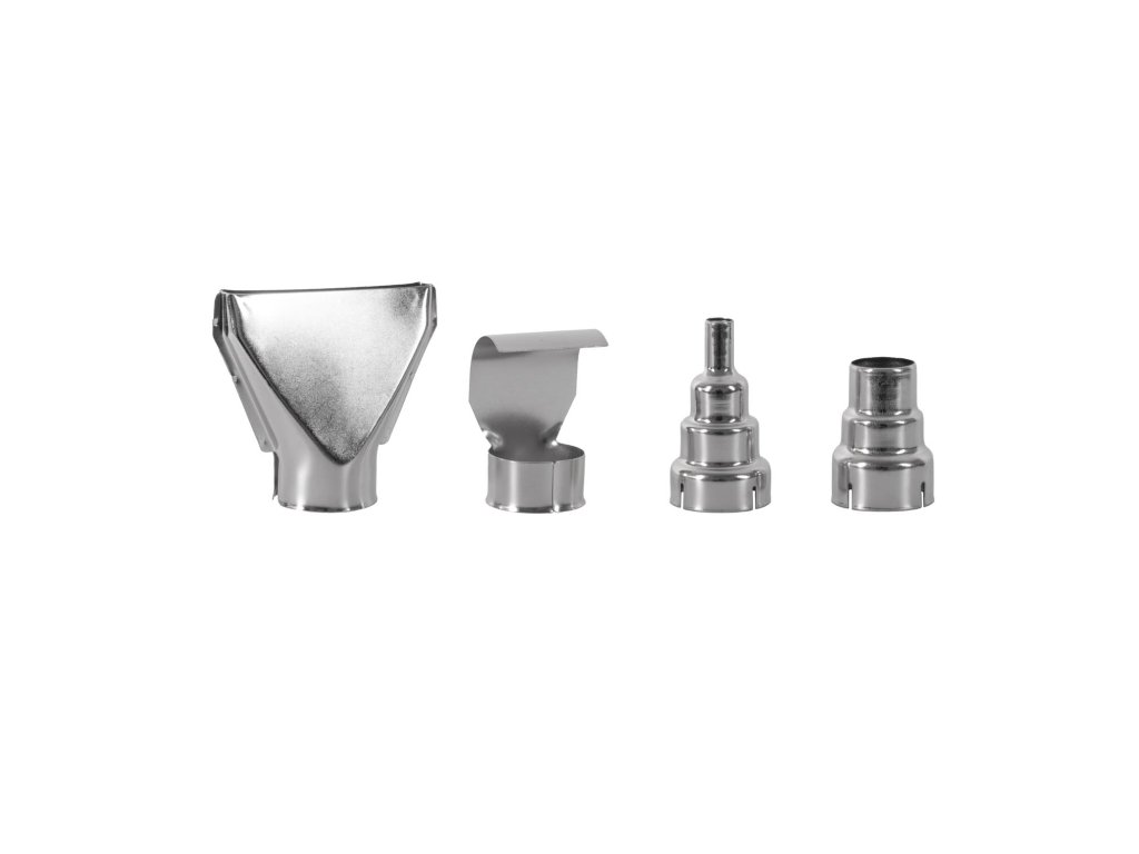Praktický háček: Možnost zavěšení pistole pro pohodlné uložení během přestávek.Vyměnitelné hubice: Součástí balení jsou 3 různé hubice pro specifické aplikace (koncentrovaný proud, rozptyl tepla apod.).