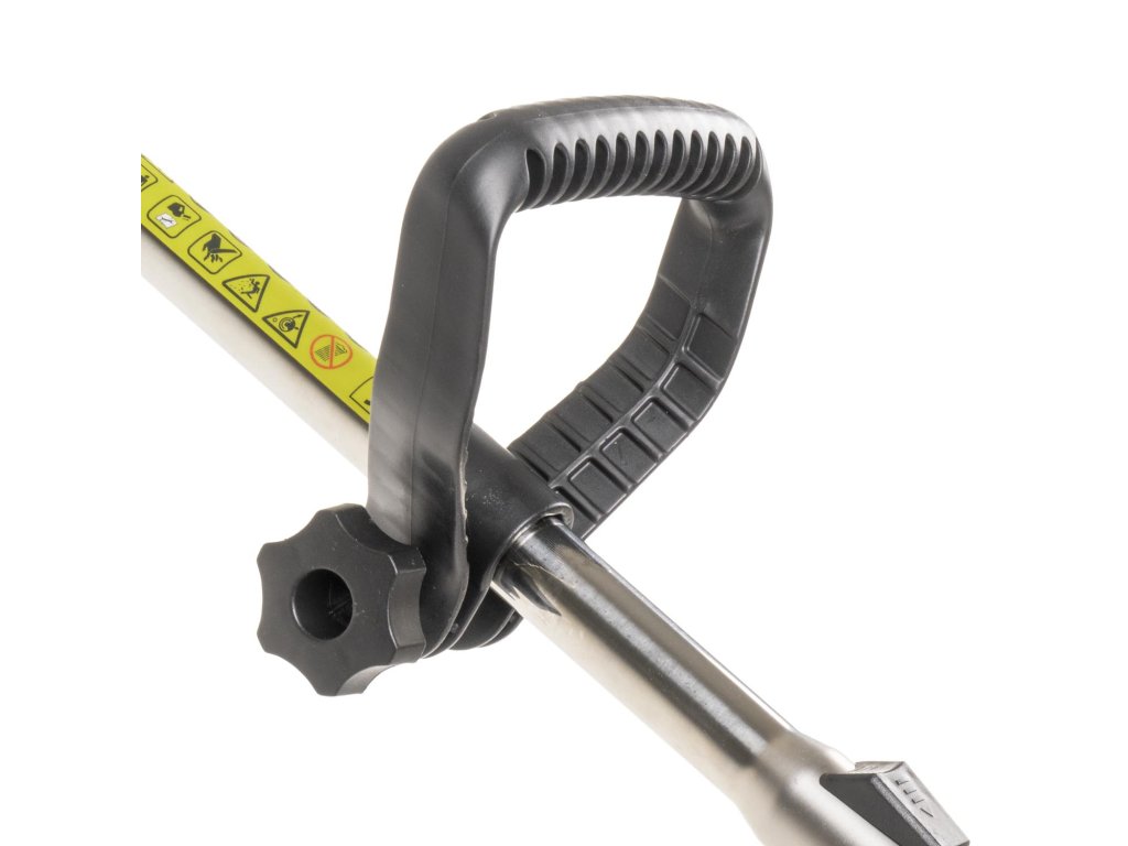 • Ochranný kryt s nožem pro zastřižení struny: Integrovaný ocelový nůž na okraji krytu automaticky zkracuje strunu na optimální délku, čímž zajišťuje efektivní sekání a zabraňuje jejímu nadměrnému opotřebení. Kryt zároveň chrání uživatele před odletující trávou a kamínky.