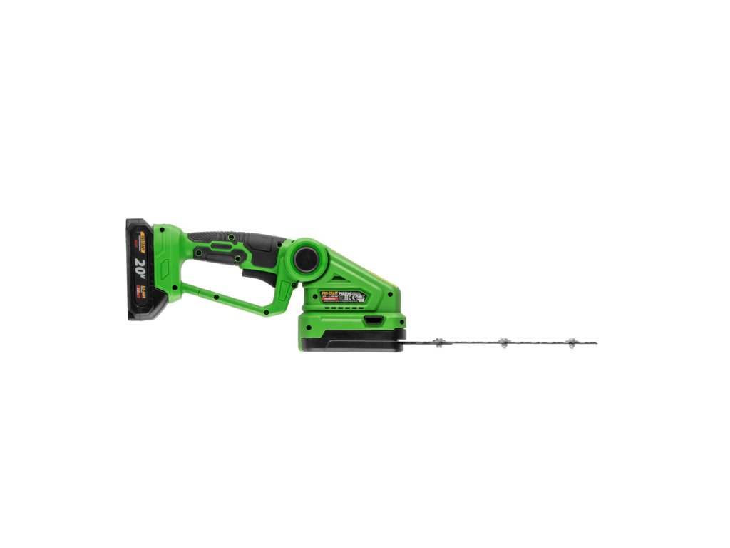 Otočná a ergonomická rukojeť., vyměnitelné nástavce.Frekvence střihu (min. -1) 1450. Délka nástavce na úpravu keřů (mm) 220. Šířka nástavce na trávník (mm) 130. Hmotnost (kg) 0,85. Součástí balení je baterie 20V 2Ah, nabíječka a výměnné nástavce.