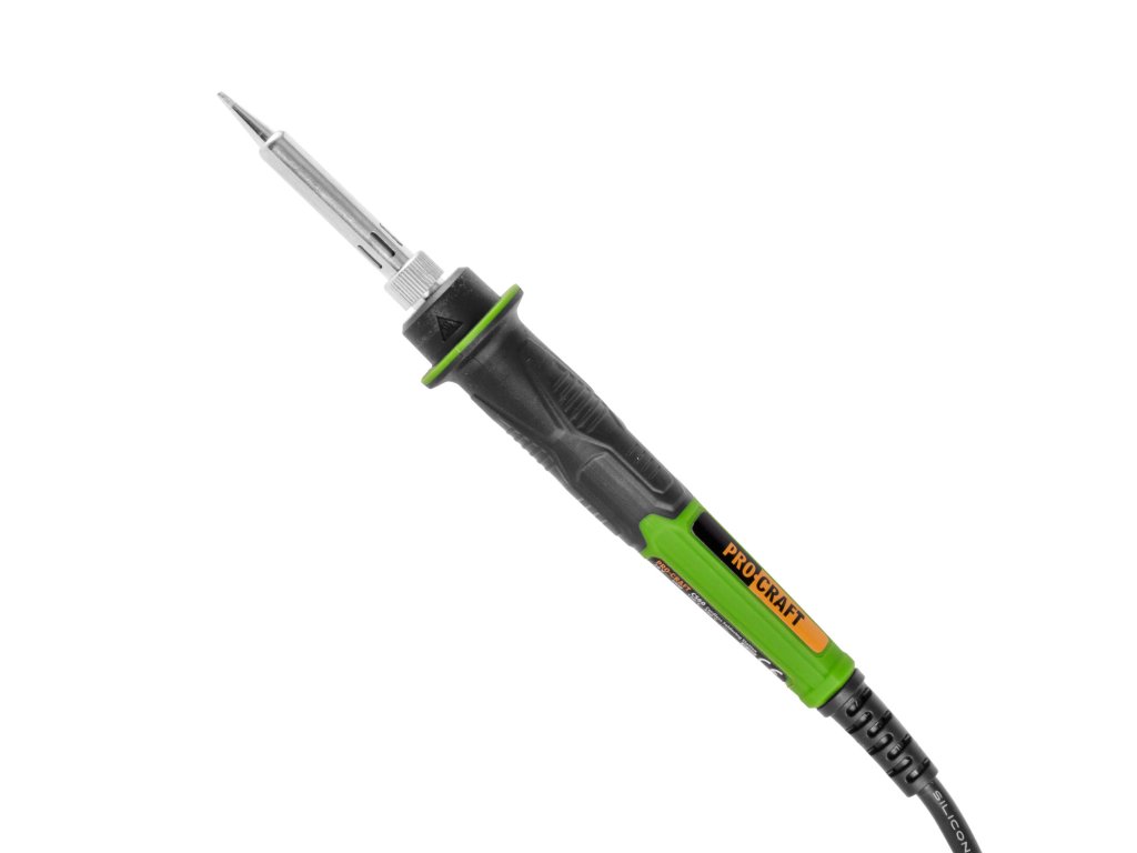 Aku pájecí stanice Procraft CS60-BB představuje výkonné a mobilní řešení pro přesné pájení bez omezení napájecím kabelem. Díky akumulátorovému napájení 20 V a vysokému výkonu 60 W je vhodná nejen pro hobby použití, ale i pro náročnější servisní a montážní práce v dílně i v terénu. Stanice umožňuje regulaci teploty v rozsahu 100–500 °C, přičemž aktuální hodnota je přehledně zobrazena na digitálním displeji. Páječka je vybavena rychlovýměnnými hroty, ergonomickou rukojetí s měkčeným úchopem a praktickým ocelovým pružinovým držákem.
