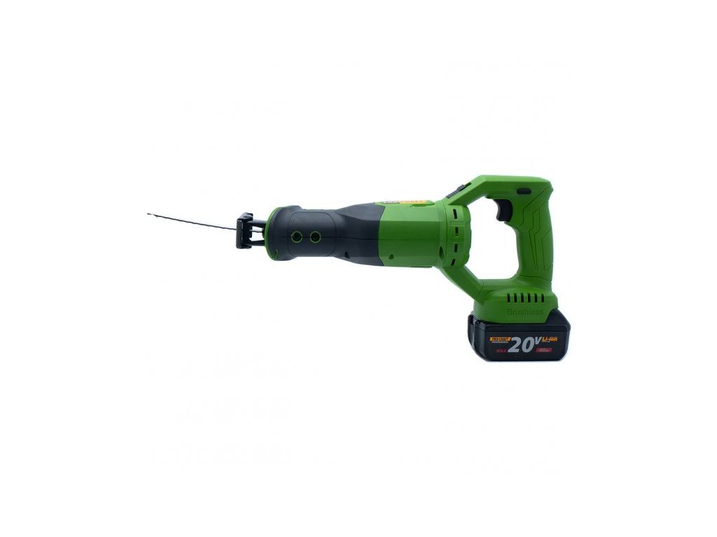 Pila mečová aku balení: kufr, 2 baterie 20V 4Ah, nabíječka, 3x pilové listy na dřevo, pilový list na kov Bezuhlíkový Brushless motor Frekvence kmitů bez zatížení (min. -1) 0-3300 Max. hloubka řezu: dřevo (mm) 150, ocel (mm) 10 Hmotnost: 2,2kg