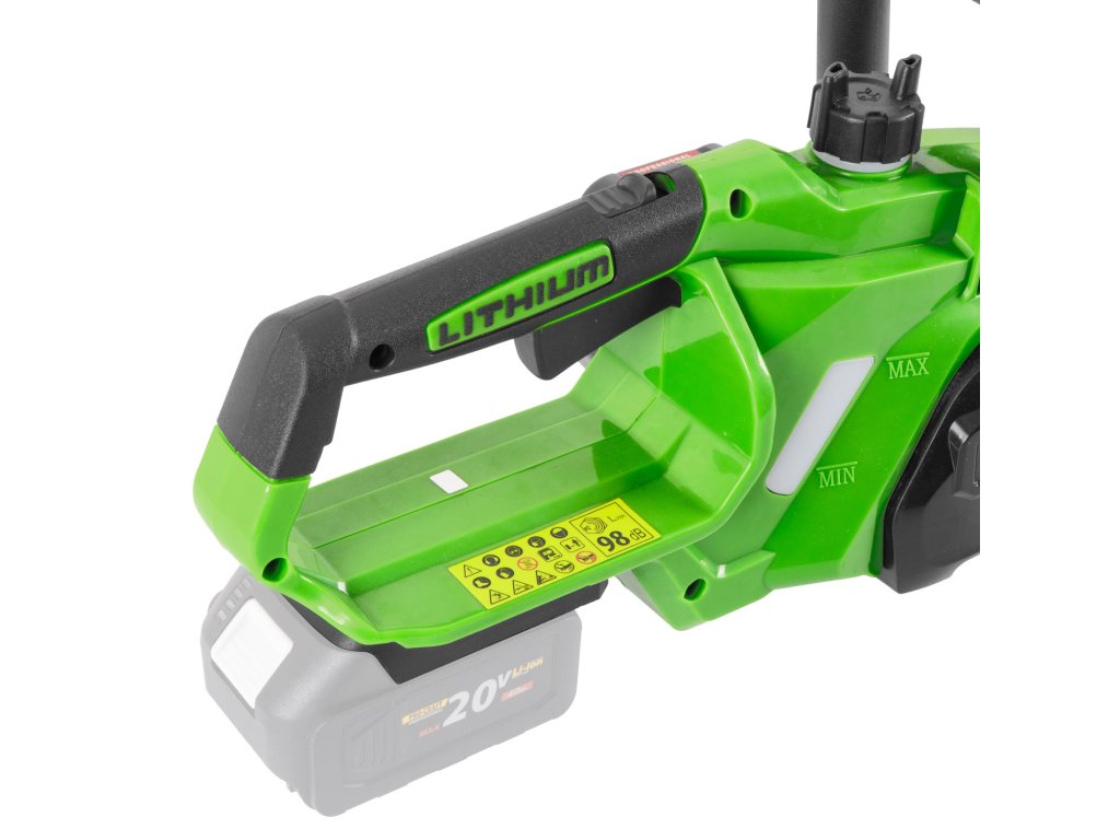 AKU jednoruční řetězová pila je díky svým kompaktním rozměrům užitečným pomocníkem při prořezávání stromů a keřů při práci v omezeném prostoru. Její provoz je v porovnání s většími stroji tichý a díky bezuhlíkovému motoru (Brushless) dostatečně výkonná. Je vybavena bezpečnostním krytem pilového řetězu. Stroj je dodávaný včetně vodící lišty a pilového řetězu v kartonu s montážním klíčem - bez akumulátoru a nabíječky.