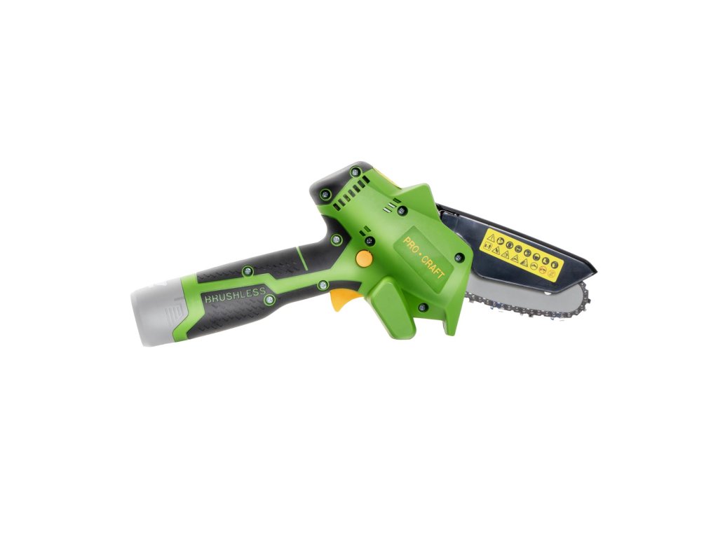 AKU jednoruční řetězová pila je díky svým kompaktním rozměrům užitečným pomocníkem při prořezávání stromů a keřů při práci v omezeném prostoru. Její provoz je v porovnání s většími stroji tichý. Je vybavena bezpečnostním krytem pilového řetězu. Stroj je dodávaný včetně vodící lišty a pilového řetězu v kartonu s montážním klíčem, nádobou na mazací olej.