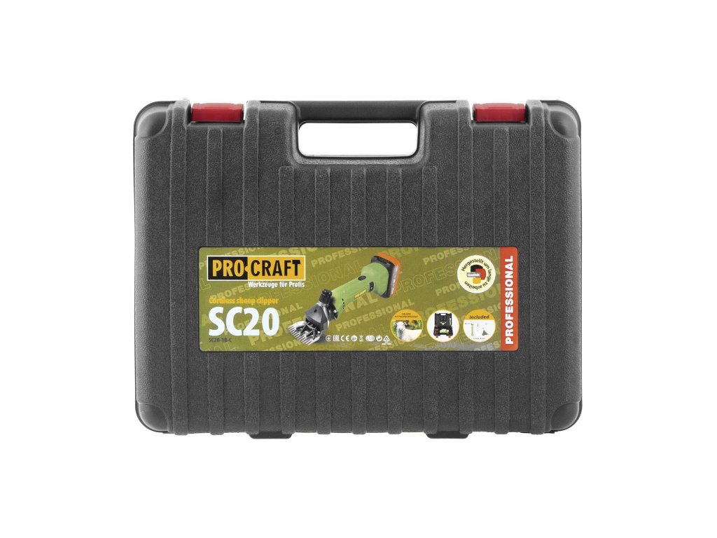Aku strojek na stříhání ovcí Procraft SC20 s bezuhlíkovým motorem 180 W a šířkou střihu 76 mm zajistí rychlé a pohodlné stříhání. Nízká hmotnost. Prodává se v plastovém kufříku včetně: s baterii 20V/4Ah, nabíječky.
