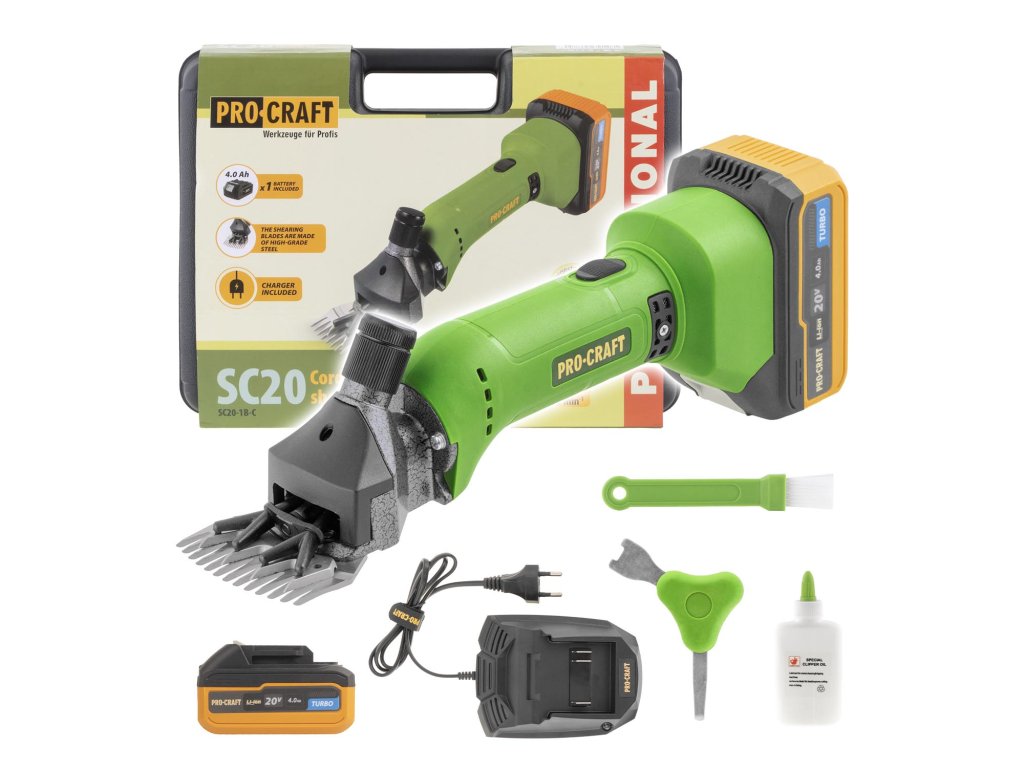 Aku strojek pro stříhání ovcí Procraft SC20 je profesionální nářadí určené pro rychlé, pohodlné a efektivní stříhání ovcí a dalších zvířat. Díky akumulátorovému provozu nabízí flexibilitu a snadnou manipulaci, bez nutnosti připojení k elektrické síti.