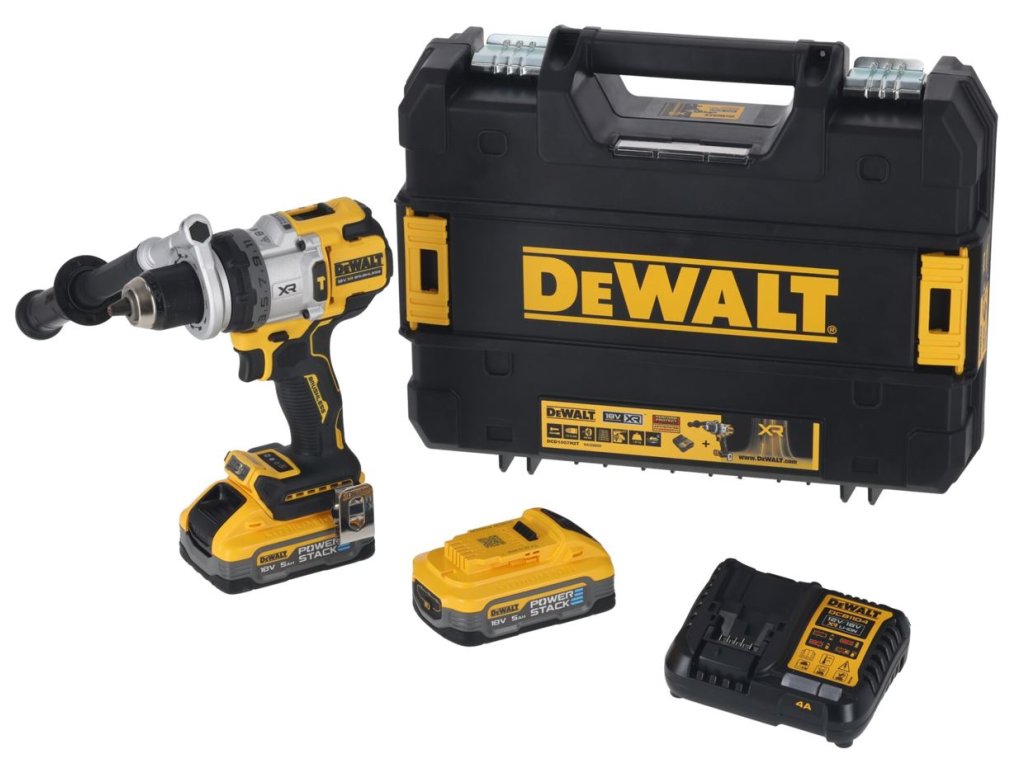 DCD1007H2T DEWALT AKU 18V BEZUHLÍKOVÁ VRTAČKA S PŘÍKLEPEM, 2 X 5,0 AH POWERSTACK BATERIE, NABÍJEČKA, KUFR T-STAK