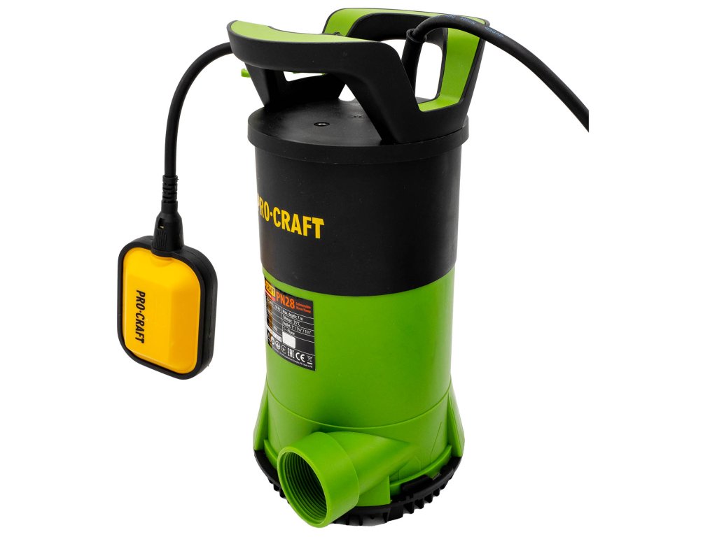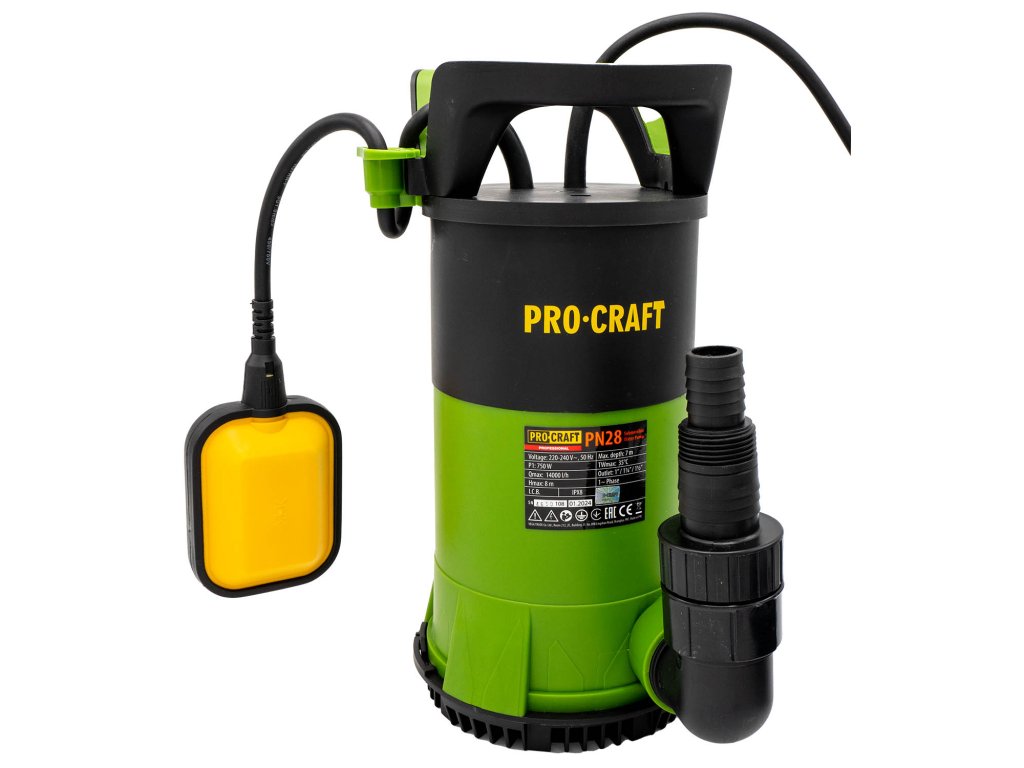 Vodní kombinované kalové čerpadlo Procraft PN28 je určeno k odčerpání čisté i znečištěné vody s příměsí drobných neabrazivních částíc z bazénů, nádrží, jezírek, jímek ad.. Silný motor s příkonem 750 W zaručí výkonnost 14000 litrů za hodinu čisté a znečištěné vody do výšky až 8 m. Ponoření je možné až do 7 metrů. Umožňuje nastavení průchodu částic 1, 8 nebo až 35mm měkkého kalu, pomocí použití jednoho ze dvou košů s různě hrubým sítem. Čerpadlo uvítá každý kdo potřebuje více čerpadel pro různou práci. Plovákový spínač automaticky zapíná a vypíná čerpadlo v závislostí poklesu hladiny, ale jde jej také zaaretovat pomocí úchytu a požít pro vysátí do 2mm. Čerpadlo je vybavené tepelnou pojistkou přetížení, která vypne při zahřátí motoru na 36°C. Čerpadlo nesmí běžet bez vody déle než 2min. Není určeno do septiků a nádrží, které obsahují písek nebo jiné abrasivní částice, nebo vlasy. Součástí čerpadla je 10m dlouhý přívodní kabel s vidlicí, plastové koleno pro připojení různých průměrů odtokových hadic 25, 32, 38 mm. Balení karton.