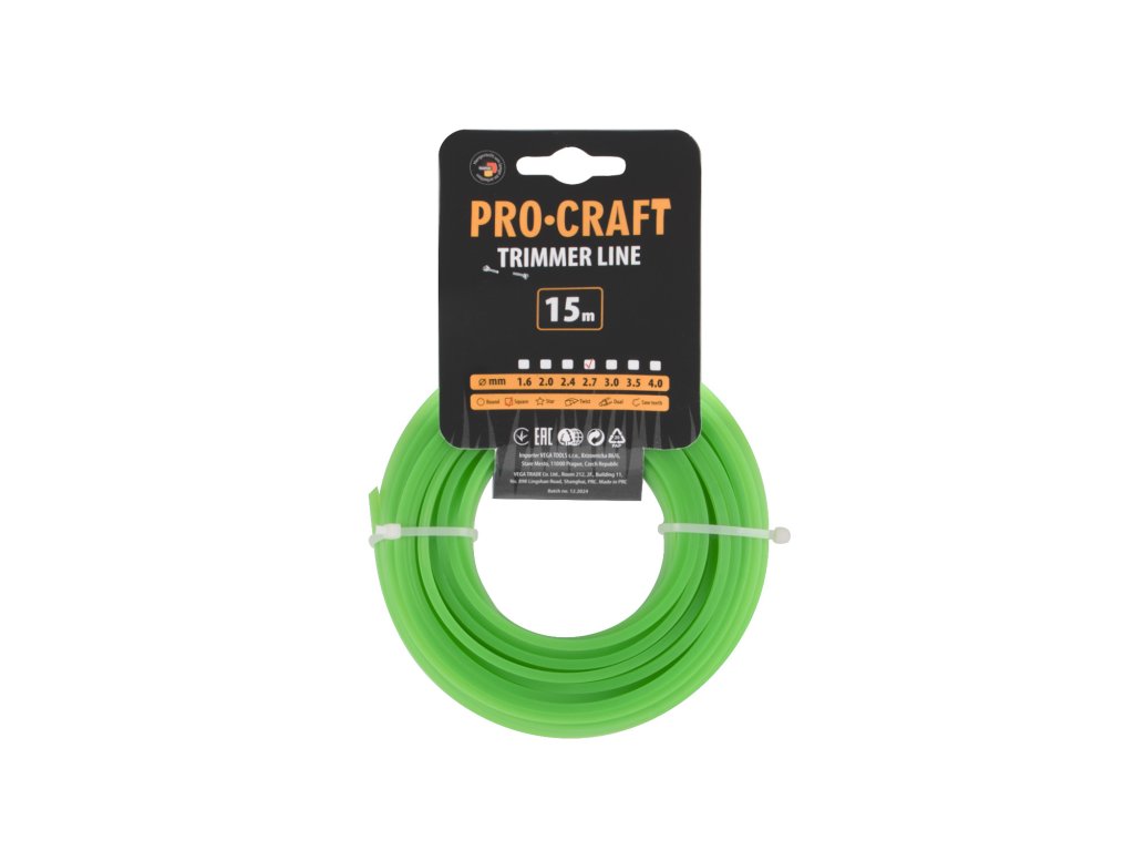 Struna žací (2.7mm) (15m) čtverec PROCRAFT KV-2.7/15 | KV-2.7/15