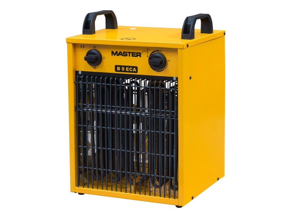 Elektrické topení Master B9 ECA má 100% účinnost, tzn. příkon ohřívače je rovný jeho výkonu. Výkon topidla lze nastavit pomocí jednoduchého přepínače. Topidlo má kvalitní ocelovou konstrukci a nízkou hlučnost. Má také přepínač léto-zima jen pro ventilaci.