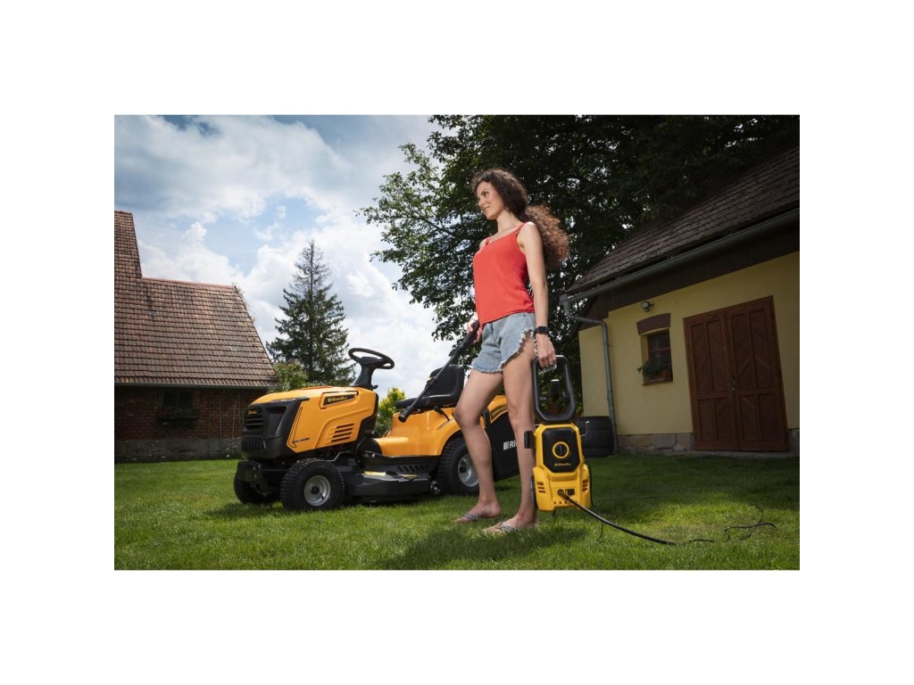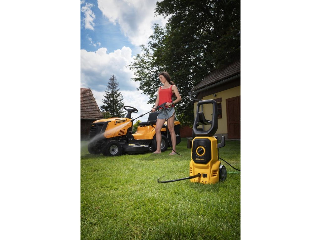 REPW 110 SET - elektrická tlaková myčka 110 barů s příslušenstvím cenově dostupná a spolehlivá myčka je ideálním řešením pro čištění nečistot kolem domu či dílny, kol, zahradního nábytku, zahradní techniky apod. myčka je vybavena moderním duálním kovovým čerpadlem s tvrzenými písty z nerezové oceli se samonasávací funkcí, což znamená, že lze myčku připojit nejenom na zdroj tlakové vody (kohoutek), ale lze nasávat vodu i z nádrží, kbelíku, sudu nebo vodních toků Total stop systém při uvolnění spínače ihned vypíná motor – méně hlučnosti a úspora energie průhledný vodní filtr brání vniknutí nečistot do čerpadla a snadno se kontroluje pouhým pohledem bez nutnosti demontáže nastavitelná tryska vytváří plochý paprsek vody, který se dá pouhým otáčením trysky dle potřeby rozšiřovat moderní design a konstrukce splňující všechny požadavky na dobrou ergonomii a snadnou obsluhu úložné prostory pro tlakovou pistoli s tryskou, hák na uložení hadice i přívodního kabelu nízká hmotnost, pojezdová kola a vysoké madlo pro snadnou manipulaci možnost připojení bohatého příslušenství Výbava: tlaková pistole s rychlospojkou, nástavec s otočnou nastavitelnou tryskou, tlaková hadice 5 m, elektrický kabel 5 m, průhledný vodní filtr, čistič na trysky, nádržka 0,4 l na saponát s tryskou, čerpadlo s funkcí samonasávání, pojezdová kola Podmínky prodloužené záruky naleznete zde. Případné bezpečnostní pokyny, výstrahy a upozornění jsou součástí návodu k obsluze, který je k dispozici v sekci KE STAŽENÍ. Kontaktní údaje výrobce / dovozce / zplnomocněného zástupce výrobce v EU: GARLAND distributor, s.r.o. Šturmova 1307, 50601 Jičín, Czech Republic email: garland@garland.czDoplňkové parametry