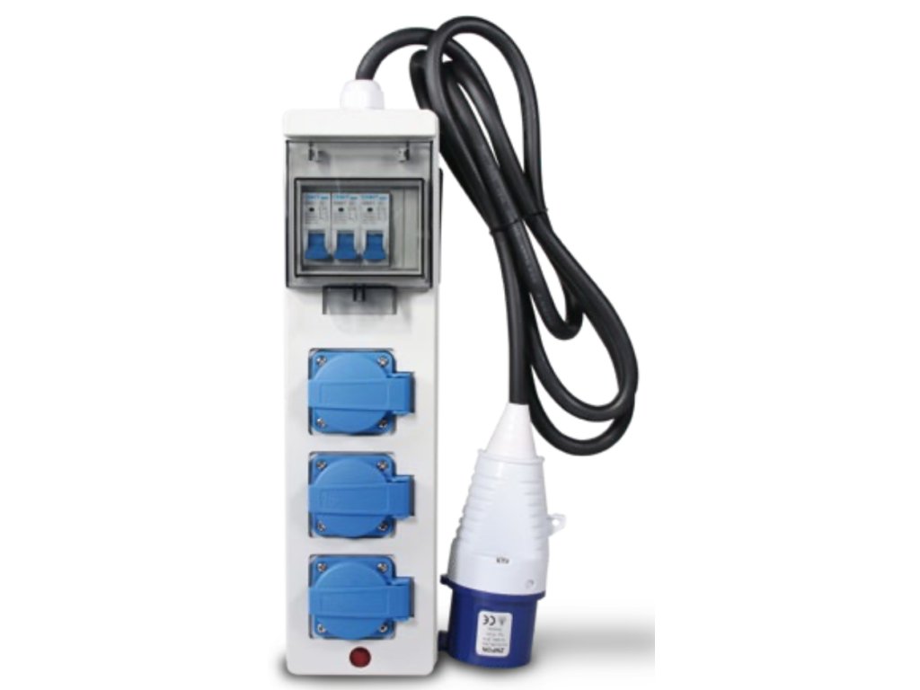 Adaptér 230V - 1x 32A / 3x 16A, jistič