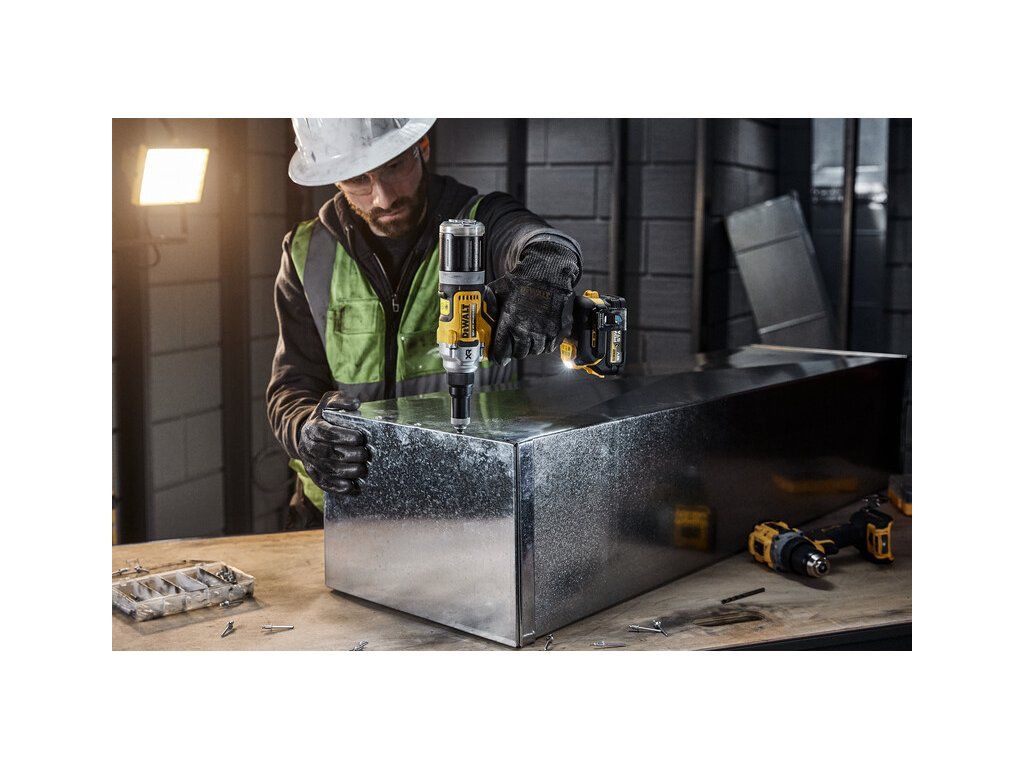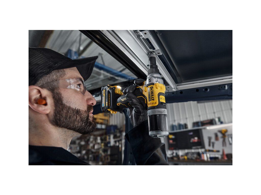 - A jak je to s bezpečností? U Aku nýtovacích kleští DEWALT DCF414 jsme dbali na to, aby byla na nejvyšší úrovni. Kleště jsou vybaveny speciálním bezpečnostním mechanismem, který minimalizuje riziko úrazu.