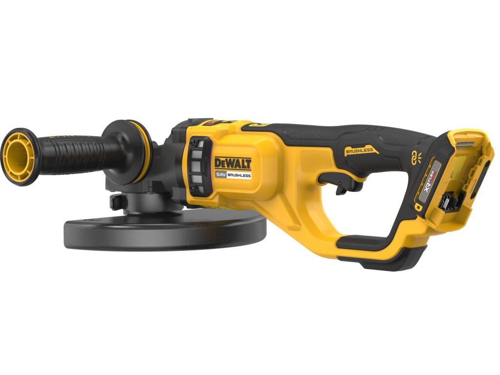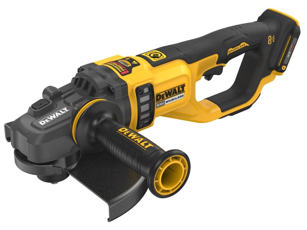- První 230mm akumulátorová úhlová bruska značky DEWALT, která je vybavena bezuhlíkovým motorem, poskytuje mimořádný maximální výkon dosahující více než 3 000 W. Funkce Perform and Protect zahrnuje brzdu proti zpětnému rázu, která dokáže zcela zastavit kotouč při zjištění zpětného rázu, a systém E-CLUTCH, který zajišťuje ochranu uživatele tím, že okamžitě zastavuje motor při zaznamenání sevření nebo zastavení kotouče.
