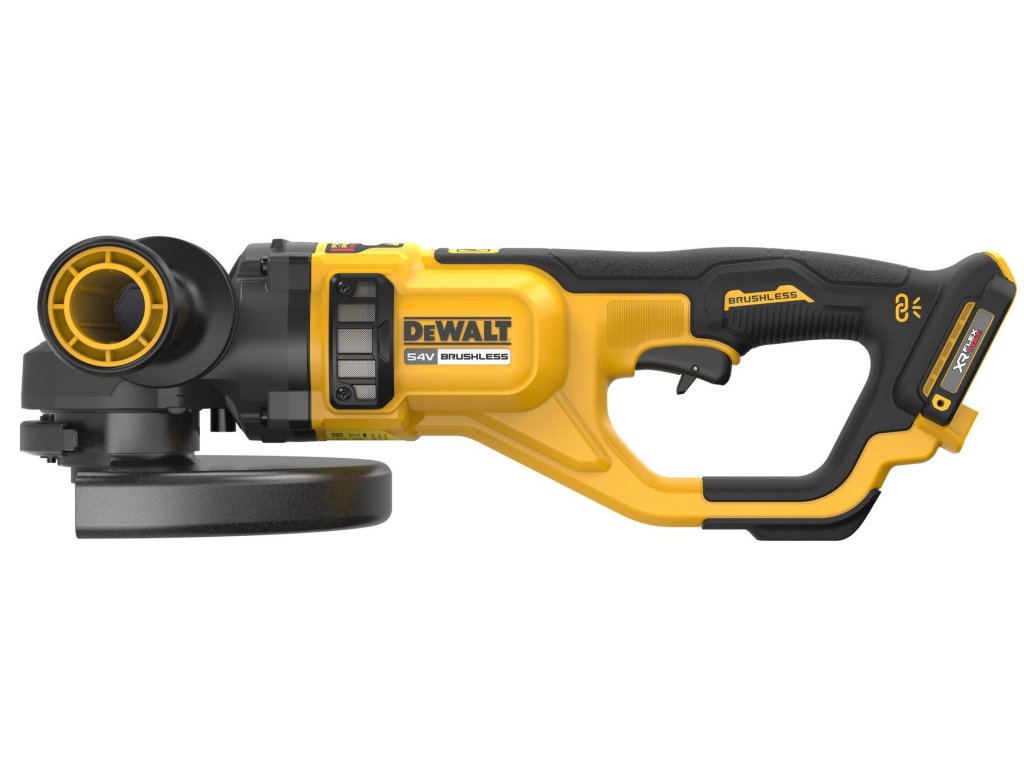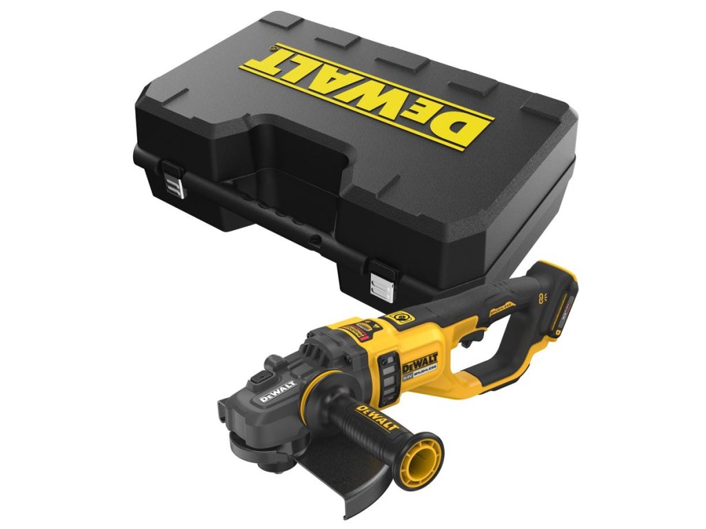DCG460NK DEWALT AKU 54V ÚHLOVÁ BEZUHLÍKOVÁ BRUSKA FLEXVOLT 230MM, BEZ BATERIE A NABÍJEČKY, KUFR