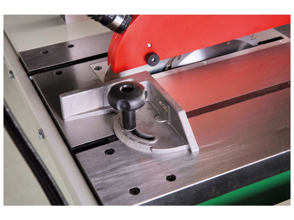 - Pilový kotouč lze naklopit vlevo v rozsahu 0° až 45°, přesně, pomocí ručního kola a stupnice