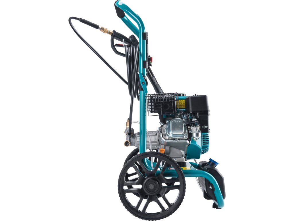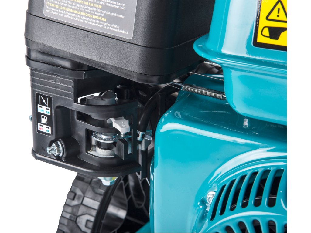 Lehký vysokotlaký motorový vodní čistič vyniká vysokým tlakem vody na výstupu – až 186bar, který zaručuje jeho vysoký čistící výkon. Srdcem čističe je kvalitní HERON motor a čerpadlo italské značky AR, které mu dávají vysoký výkon a dlouhou životnost. Stroj je tak určen k velice efektivnímu a rychlému čistění povrchů a ploch z kamene, dřeva, kovu, plastu jako např. chodníků a teras za účelem odstranění mechu a řas, dále fasád domů, zahradního nářadí, zemědělských strojů atd. Hlavní uplatnění nachází tento výrobek na stavbách, po povodních, čištění aut a zemědělské techniky a pro místa kde není vždy dostupný el. proud a je třeba vyčistit větší plochy. Na jednu 3,6l nádrž benzínu můžete nepřetržitě pracovat 2h. Čistič má kompaktní konstrukci s velmi malým půdorysem a v rámu je zabudovaná nádoba pro saponát, který se používá pro šamponování. Tlaková hadice s ocelovou výztuhou ma na obou koncích kompatibilní rychlospojky a pokud potřebujete delší dosah hadice můžete zapojit dvě za sebou. Sklopitelné madlo a pevná kola, která jsou součástí dodávky, umožňují snadný převoz stroje na místo použití podobným způsobem jako cestovní zavazadlo s madlem a kolečky. Součásti dodávky je 5 trysek (0º, 15º, 25º, 40º a šamponovací), 10m tlaková hadice s rychlospojkami a stříkací pistole s hubicí. Pomocí adaptéru 8895231 lze na stroj připevnit spoustu dalšího příslušenství v naší nabídce.- čerpadlo italské firmy AR