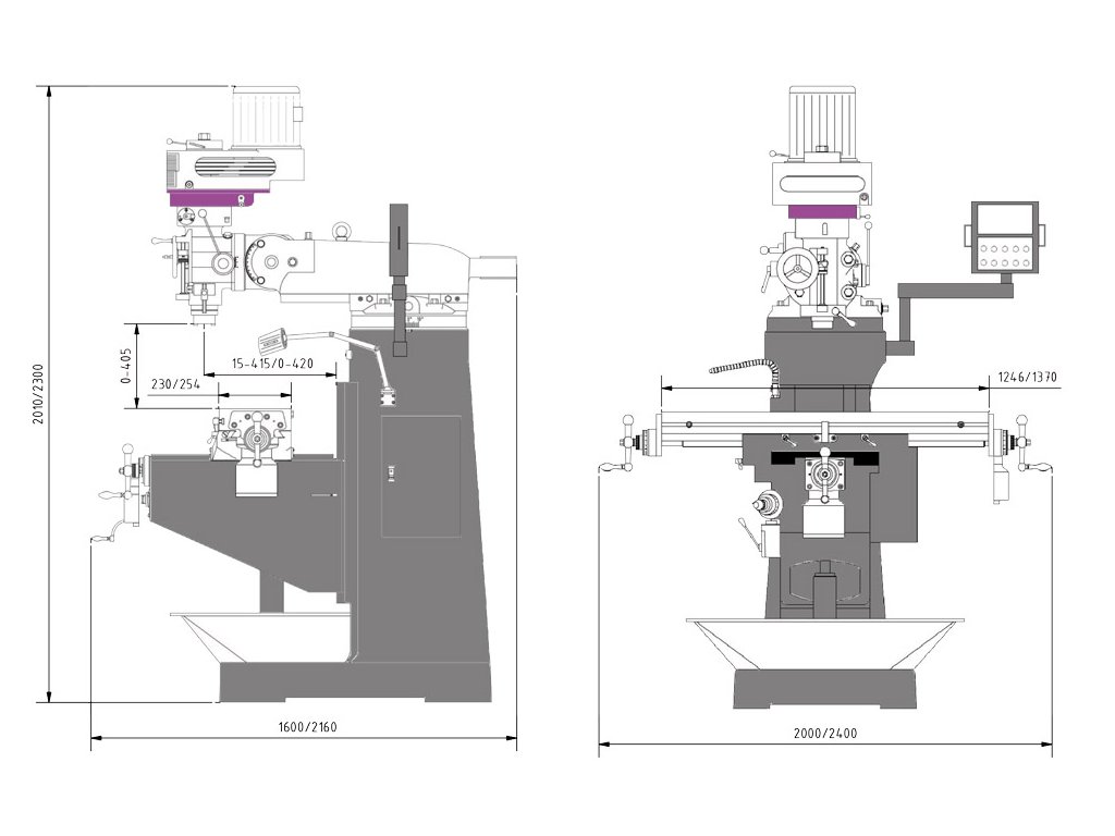 | Úhel naklopení frézovací hlavy: | -90° / vertikálně - 45 °až +90° / vertikálně + 45 ° |