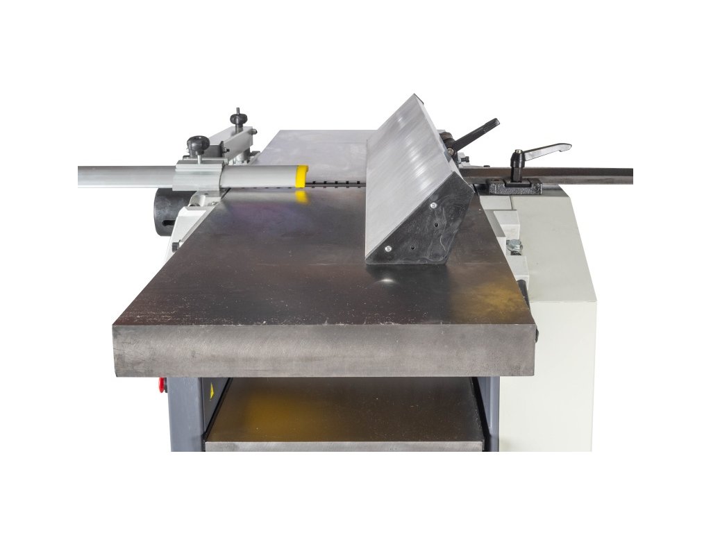 - Silný stůl na centrálním vodicím sloupu a podpěry pro čisté hoblování