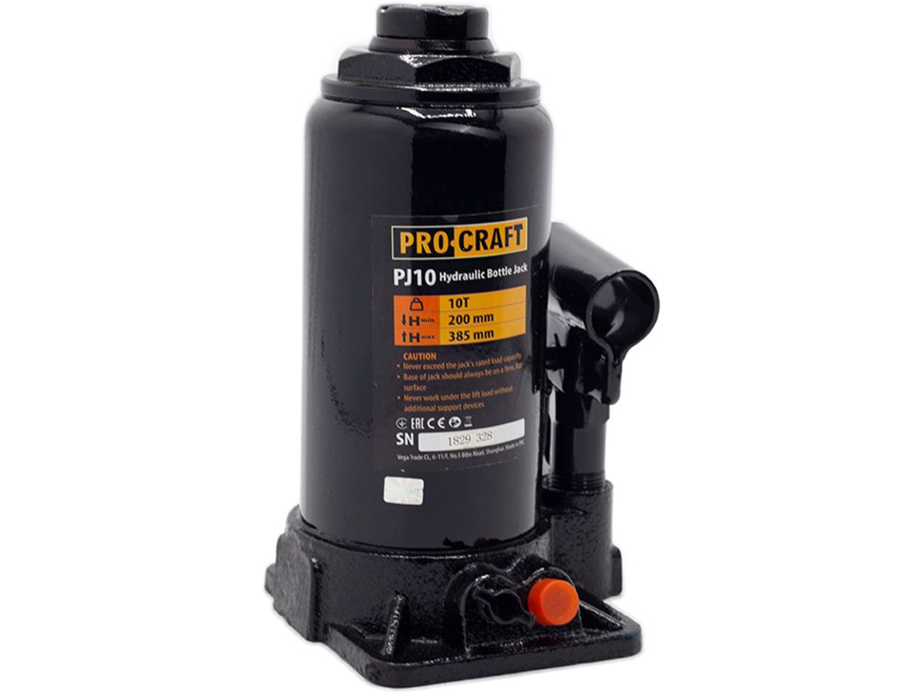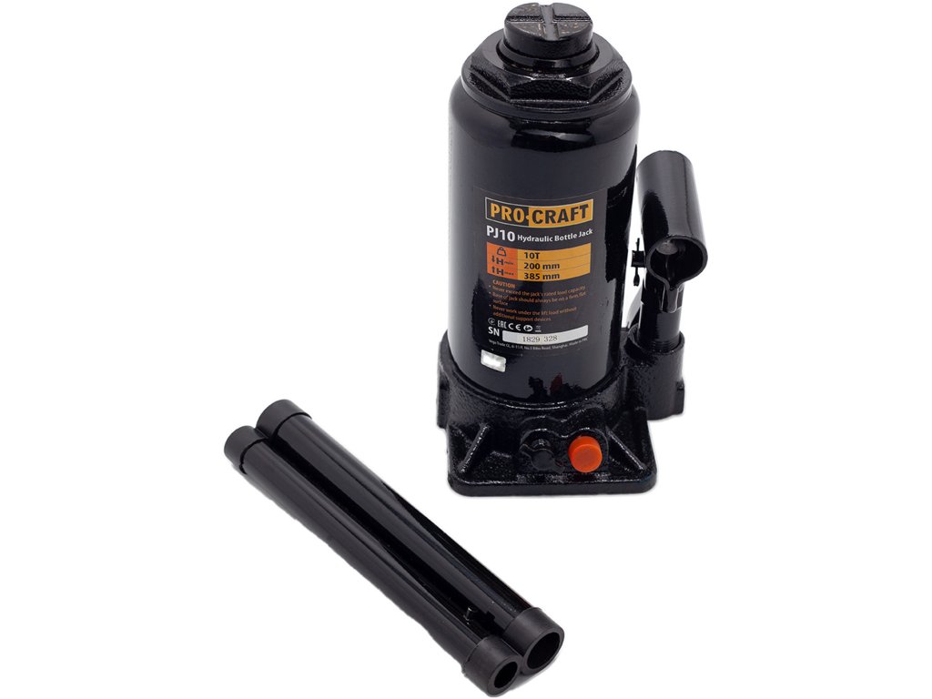 Hydraulický zvedák Procraft PJ10 je určen k zdvihání automobilů, ve stavebnictví a průmyslu. Konstrukce je z kvalitní litiny, vybavena bezpečnostním ventilem. Zvedák má zdvihací kapacitu 10 tun a zdvihový rozsah od 200 mm do 385 mm a vybaven šroubovací patkou. Pohodlné zdvihání a plynulé spouštění břemen usnadňují práci. Součástí dodávky je tyč. Balení karton.