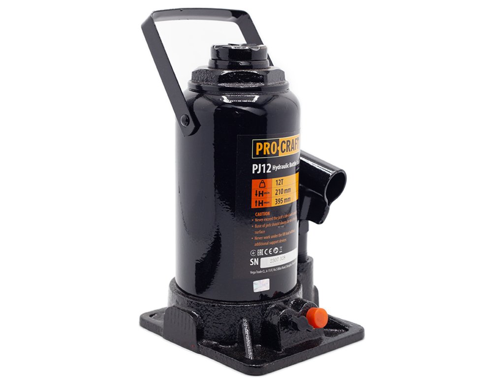 Hydraulický zvedák Procraft PJ12 je určen k zdvihání automobilů, ve stavebnictví a průmyslu. Konstrukce je z kvalitní litiny, vybavena bezpečnostním ventilem. Zvedák má zdvihací kapacitu 12 tun a zdvihový rozsah od 200 mm do 385 mm a vybaven šroubovací patkou. Pohodlné zdvihání a plynulé spouštění břemen usnadňují práci. Součástí dodávky je tyč. Balení karton.