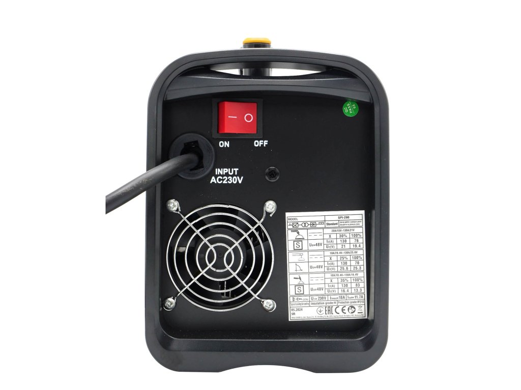 Vhodné pro svařování oceli a konstrukčních materiálů pomocí obalených elektrod v dílně i venku.