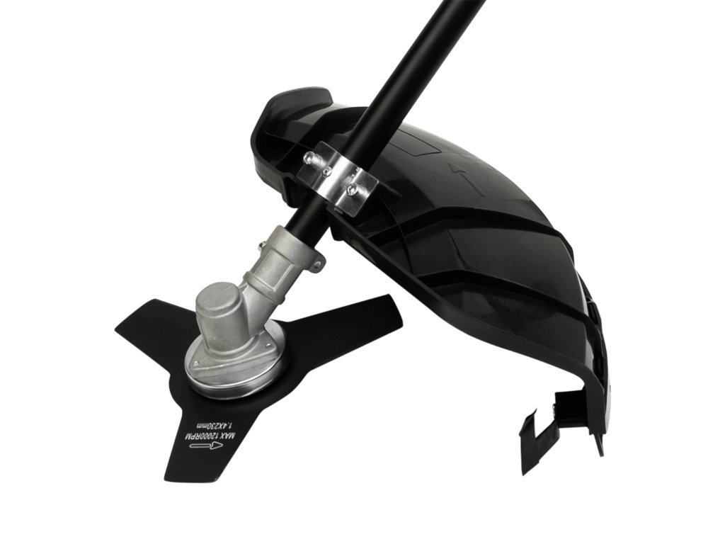 Motor s otáčkami 7000 ot./min zajišťuje plynulý výkon při sečení běžné i hustější vegetace. Funkce Soft start (pozvolný rozběh motoru) chrání zařízení i síť před proudovým nárazem při startu a zajišťuje bezpečnější a pohodlnější ovládání. Výměnná strunová hlava s poloautomatickým vysouváním umožňuje snadné doplňování struny, zatímco 3zubý kovový nůž se hodí pro náročnější porost.