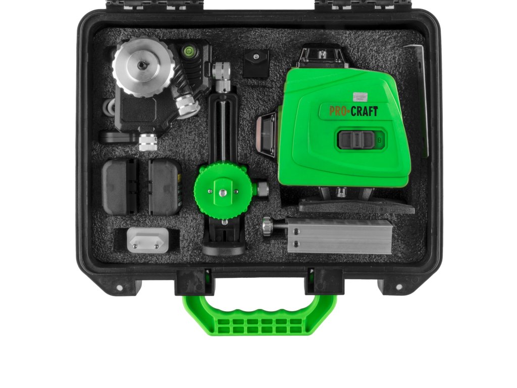 Sada laseru Procraft LE-4G se stativem je spolehlivým a přesným řešením pro každého, kdo vyžaduje rychlou a přesnou nivelaci bez kompromisů. Kombinace výkonného zeleného laseru s plnou 360° projekcí a stabilního stativu zajišťuje vysoký komfort, přesnost a efektivitu práce při každém projektu – doma, na stavbě i v profesionálním provozu.