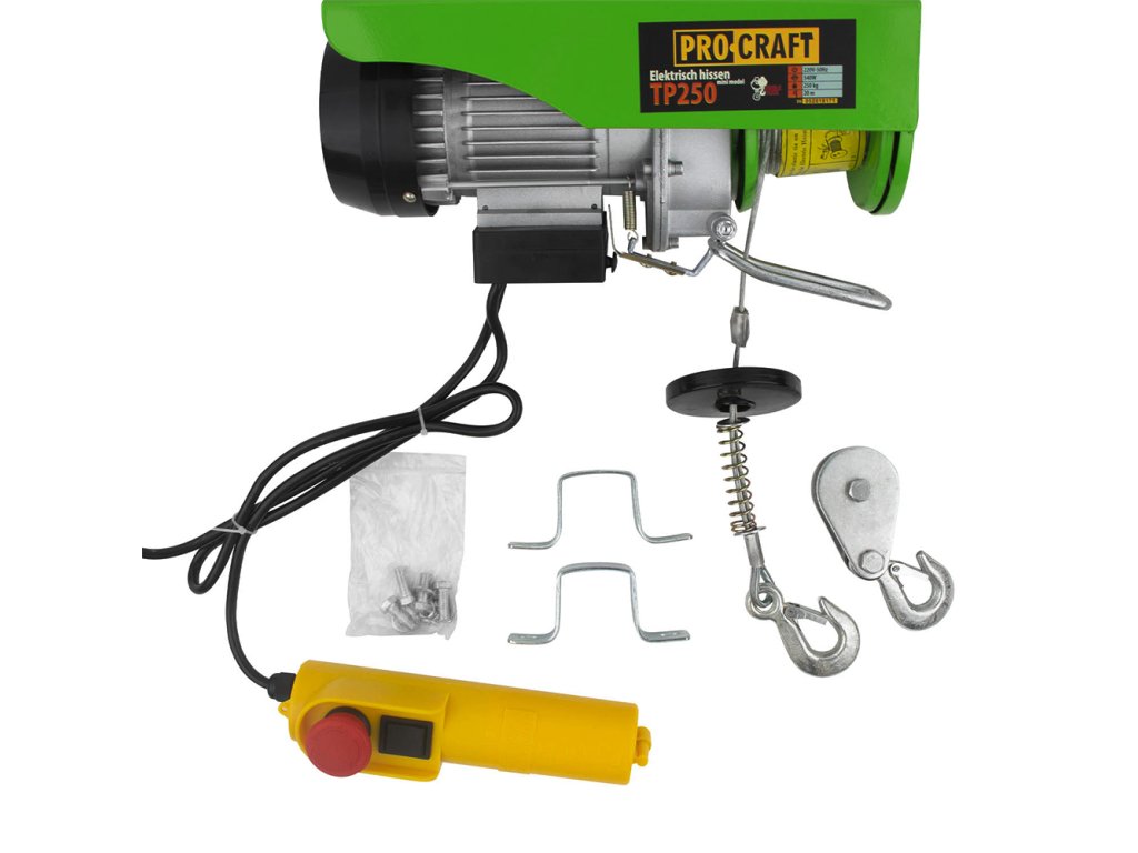 Elektrický lanový naviják Procraft TP250 spojuje vysoký výkon, spolehlivost a bezpečnost. Díky robustní konstrukci, silnému motoru a možnosti využití kladky je perfektní volbou pro profesionály i náročné domácí uživatele, kteří hledají spolehlivého pomocníka pro manipulaci s těžkými břemeny.