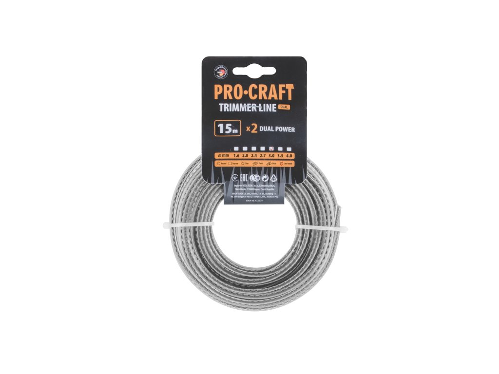 Žací struna PROCRAFT s ozubeným profilem s výstuhou je určena pro výkonné a rychlé sekání v náročnějších podmínkách. Díky speciálnímu ozubenému povrchu poskytuje agresivnější řez, snadno si poradí s hustou trávou, odolným plevelem.