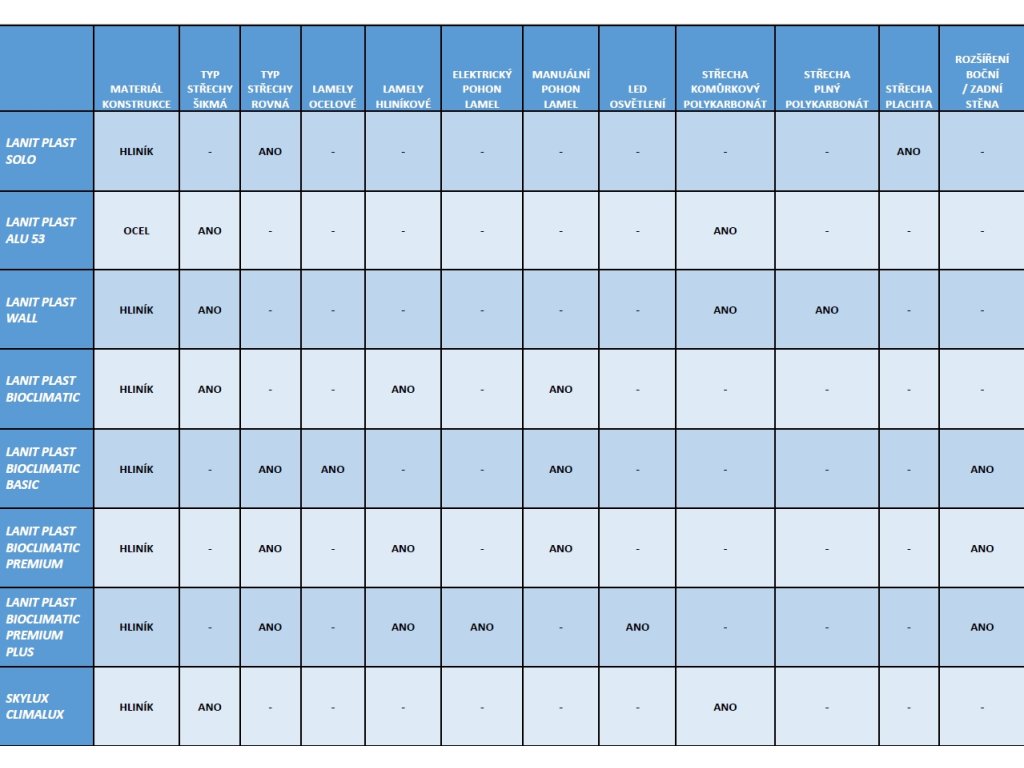 Přednosti bioklimatické pergoly LANITPLAST BASIC: