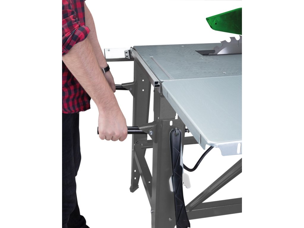 - Pilový kotouč lze výškově nastavit pomocí ruční kliky a stupnice
