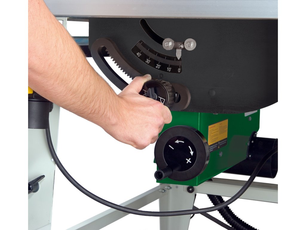 - Nastavení výšky pilového kotouče pomocí ručního kola
