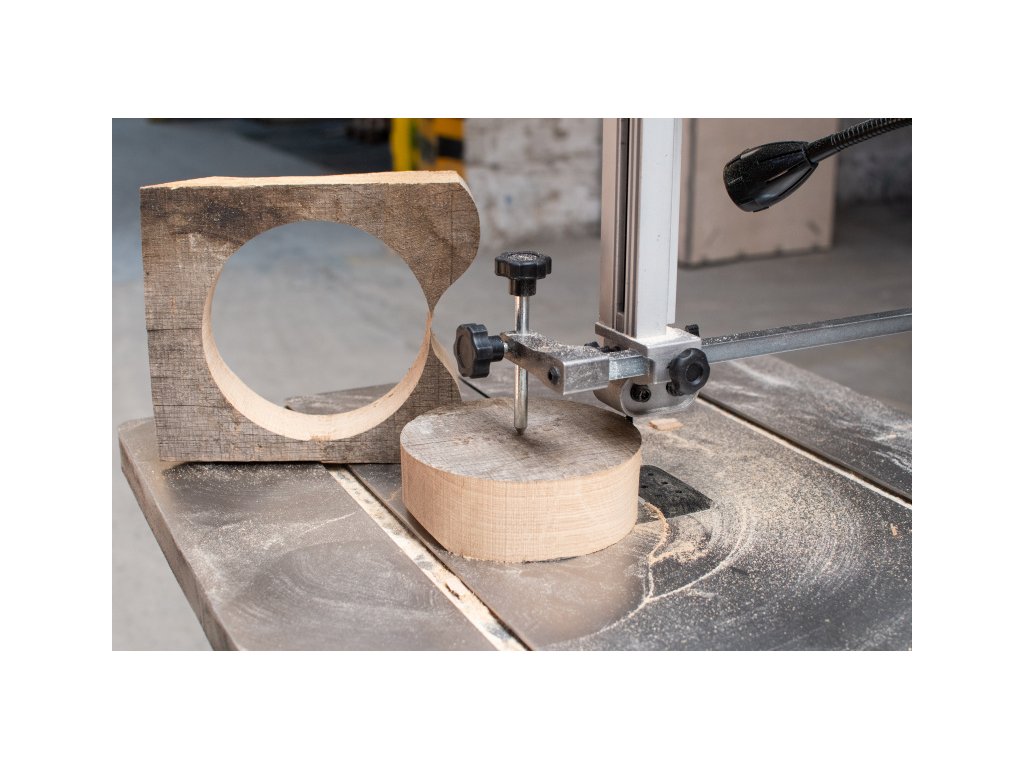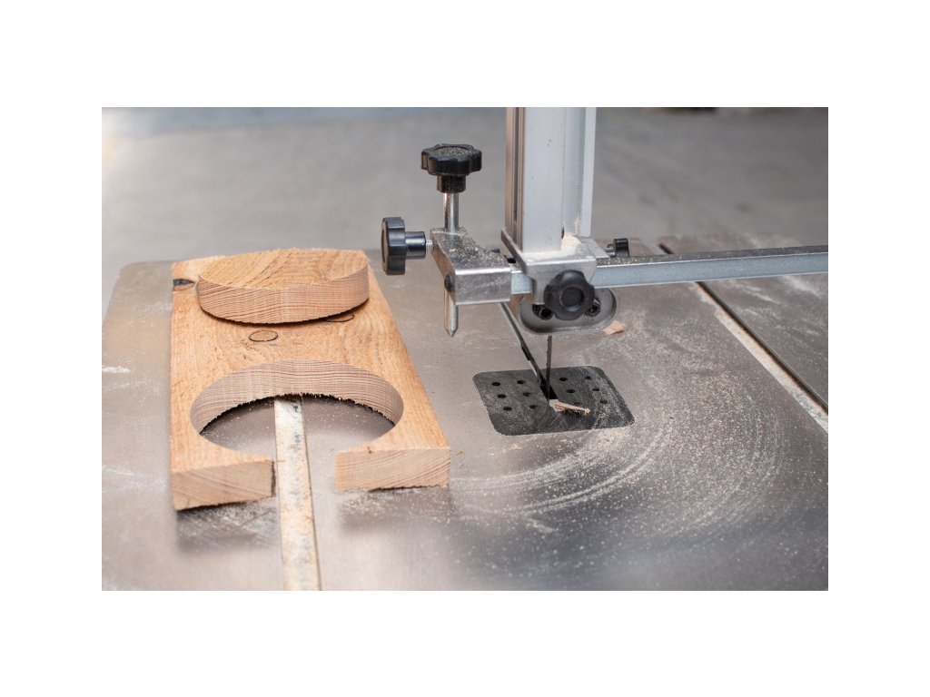 Pásová pila na dřevo je určena pro dělení měkkého i tvrdého dřeva, dřevotřískových a překližkových desek. Pohon pilového pásu zajišťuje jednofázový asynchronní elektromotor s kotvou nakrátko, je ovládaný dvoutlačítkovým ovladačem, který se spouští na podpětí s funkcí tlačítka pro nouzové zastavení stroje. Pracovní stůl z šedé litiny je možné naklápět v rozsahu 0 – 45°. Stůl je vybaven podélným vodícím a úhlovým příložníkem. Pila je opatřena přírubou pro připojení na odsávací zařízení. V závislosti na použití druhu pilového pásu, lze na stroji řezat různé materiály (dřevo, plast a neželezné kovy), tak i různými technikami, při použití širších pásů lze řezat rovné řezy a pokud použijete užších pásy, oceníte je především při vyřezávání.- Velké vyložení rámu a značná výška řezu