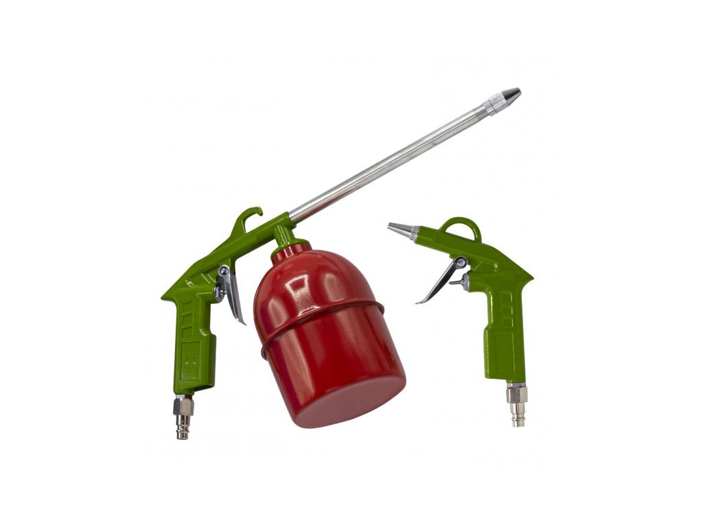 Vzduchová hadice: délka 5m Plnič pneumatik s manometrem: pracovní tlak 15 barů. Piskovácí pistole: otvor trysky 2 mm, pracovní tlak 5 bar, nádoba 1000 ml.