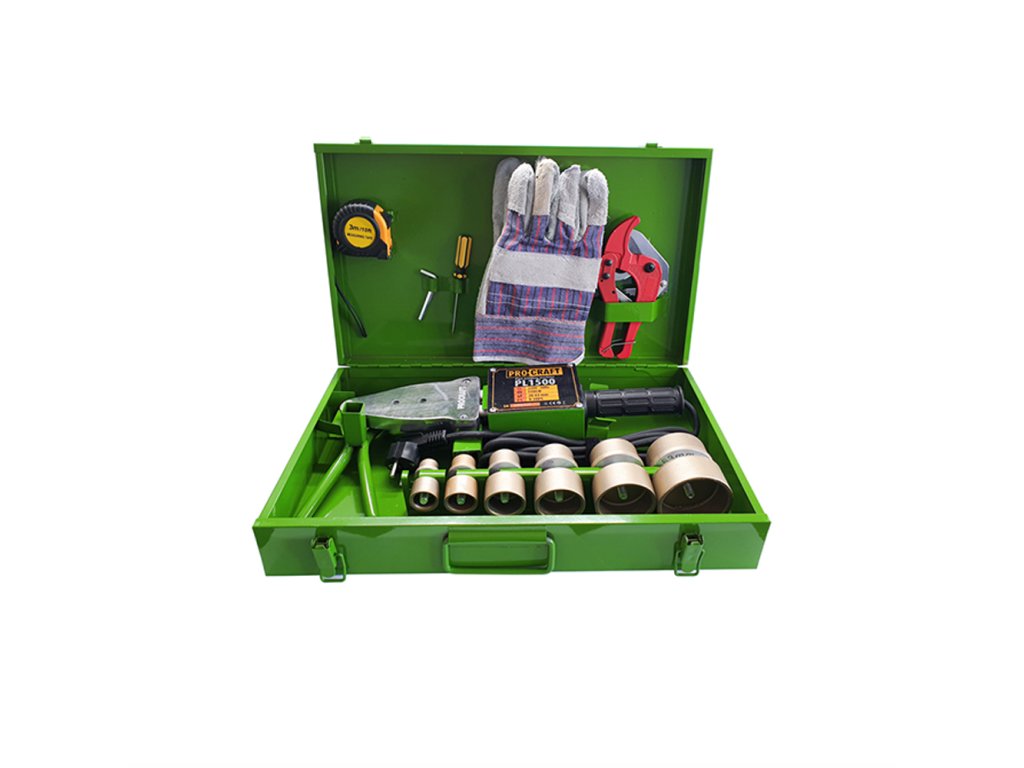 Polyfúzní svářečka Procraft PL1500 je určena k svařování plastových trubek z homopolymer polypropylenu, PPC, PPR a PELD. Regulace teploty v rozsahu 0-300°C umožňuje nastavení optimálních parametrů při práci s různými materiály. Sada nástavců zaručí svařování potrubí od 20 do 63mm. Lehká a kompaktní konstrukce umožňuje práci v omezeném prostoru. Součástí dodávky jsou nástavce s teflonovým povrchem D20/25/32/40/50/63mm, kovový
