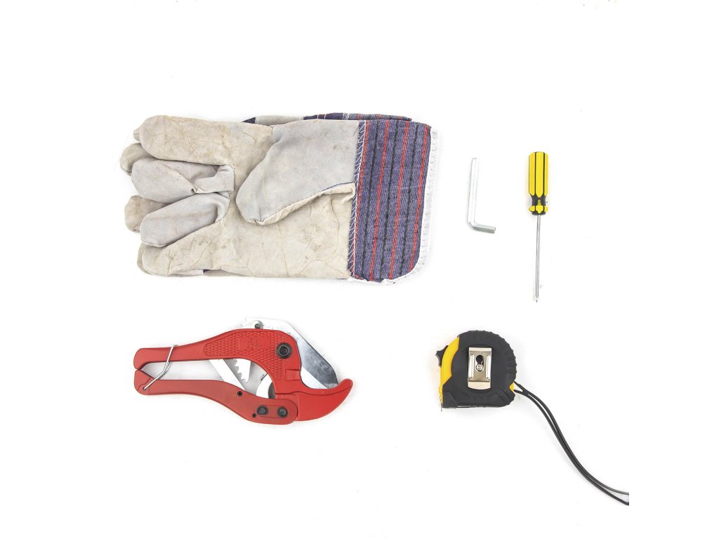 kufřík, šroubovák, imbusový klíč, rukavice a metr. Balení karton.