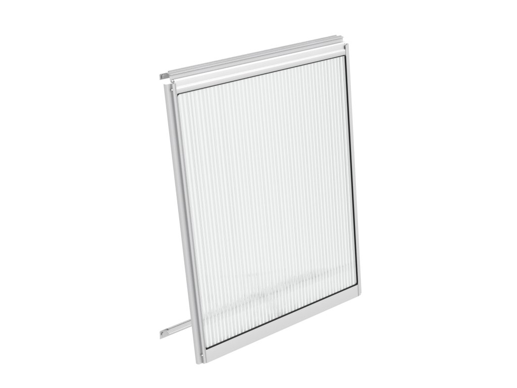 Ventilační stěnové okno o rozměrech š 59,5 x v 79,2 cm, provedení z eloxovaného hliníku. Prosklení okna je z komůrkového polykarbonátu 6 mm, který je obsahem balení.