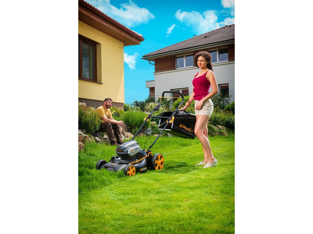 RALM 4640i je momentálně nejvýkonnější akumulátorovou sekačkou značky Riwall. Jedná se o stroj pro údžbu travnatých ploch do 800 m2, který si hravě poradí i s vysokou, či vlhkou trávou. Pokud tedy hledáte spolehlivou, tichou a výkonou sekačku, která Vás nezradí a zároveň bude příjemná na ovládání, není lepší volby. Motor Sekačku pohání spolehlivý bezuhlíkový motor PowerMax. Oproti klasické uhlíkové technologii má motor až o 50% vyšší účinnost. Síla, která otáčí hřídelí je kontrolována elektronicky. Díky tomu motor odebírá pouze tolik energie, kolik při daném zatížení potřebuje a navíc udržuje konstantní točivý moment. Máte tak stejně síly při malých i vysokých otáčkách a výdrž baterie se výrazně prodlužuje. Máte tak k dispozici sílu, na kterou jste byli zvyklí jen u nejsilnějších elektrických nebo benzínových strojů. Motory PowerMax jsou prakticky bezúdržbové a díky moderní bezuhlíkové koncepci a možnostem zapouzdření jsou velmi odolné jak proti rázům, které při práci se zahradní technikou běžně nastávají, tak proti vniknutí prachu apod. Jejich životnost je tak téměř dvojnásobná v porovnání s klasickými uhlíkovými motory. Motor využívá k pohonu jednu 40 V lithium-iontovou baterii, přičemz lze využívat akumulátory Riwall s různou kapacitou. Orientační provozní doba bez zatížení se pohybuje od 12 do 50 minut, dle typu baterie (2Ah-9Ah). Uvedené časy se samozřejmě můžou lišit v závilosti na zatížení stroje. Baterie ani nabíječka nejsou součástí balení a je nutné je dokoupit zvlášť! Podvozek Sekačka je posazena na robustních pojezdových kolech o průměru 180 a 250 mm, která jsou vybavena kvalitními kuličkovými ložisky. Funkci pojezdu následně obstarává odolná převodovka. Samotné šasi je vyrobeno z kvalitního plechu, přičemž je v přední části opatřeno plastovým nárazníkem, který chrání stroj a je využitelný i jako madlo pro přenášení. Tvar šasi je navíc dimenzovaný pro perfektní sběr trávy a umožňuje sekání blízko obrubníků. Řízení stroje probíhá skrze ergonomická řídítka s měkčeným povrchem, která lze výškově nastavit nebo při skladování zcela sklopit. Na řídítkách jsou umístěny stejné ovládací prvky jako v případě benzínových sekaček - brzda motoru a páka pojezdu. Veškeré ovládání bylo navrženo tak, aby byl stroj co možná nejvíce pohodlný na ovládání. Podvozek samozřejmě nabízí možnost centrálního nastavení výšky sečení od 25 do 75 mm (celkem 7 pozic) skrze snadno ovladatelnou páku. První dvě pozice slouží pro velmi nízký střih, takzvaný "anglický trávník." Žací a sběrné ústrojí Spolehlivý střih trávy obstarává široký tvarovaný žací nůž se záběrem 46 cm. Sekačka podporuje systém 4v1. Máte tedy možnost využít funkce: bočního výhozu, zadního výhozu, mulčování nebo sběru do objemného 60 litrového koše. Samotný sběrný koš je zkonstruován z plastového topu a tkaniny s různě propustnými vrstvami, které snižují prašnost. Sekání by tak mělo být více příjemné pro lidi trpící alergiemi. Shrnutí výhod snadné ovládání díky vlastnímu pojezdu tvořeného robustní a spolehlivou převodovkou moderní, výkonný a bezúdržbový motor PowerMax s bezuhlíkovou technologií vyšší účinnost motoru až o 50 % oproti klasické technologii nejpohodlnější cesta údržby vaší zahrady-vysoký výkon, snadné startování, tichý chod, žádné emise ani otravný kabel, žádný spotřební materiál (olej, benzín, svíčky, filtry, apod.) nově tvarované vysoké šasi pro perfektní sběr trávy a sekání blízko obrubníků funkce 4v1: sběr do koše, mulčování, zadní výhoz, boční výhoz mulčovací záslepka i boční deflektor součástí dodávky ergonomická měkčená a výškově nastavitelná řídítka lehce sklopná řidítka a přední madlo pro snadný transport centrální nastavení výšky sečení do 7 pozic nejnižší pozice pro velmi nízký střih trávníku tryska pro snadné čištění žacího prostoru objemný koš s plastovým topem, pohodlným madlem a odvodem vzduchu do stran (šetrné pro alergiky) zadní kola o velkém průměru zajišťují pohodlnou jízdu i na nerovném povrchu a přispívají ke snadné manévrovatelnosti stroje plastová ochrana přední části s integrovaným madlem Orientační provozní doba bez zatížení (2Ah/4Ah/6Ah/9Ah): 12/24/37/50 min. Využijte prodloužené záruky Bližší informace o záručních podmínkách naleznete zde. Případné bezpečnostní pokyny, výstrahy a upozornění jsou součástí návodu k obsluze, který je k dispozici v sekci KE STAŽENÍ. Kontaktní údaje výrobce / dovozce / zplnomocněného zástupce výrobce v EU: GARLAND distributor, s.r.o. Šturmova 1307, 50601 Jičín, Czech Republic email: garland@garland.czDoplňkové parametry
