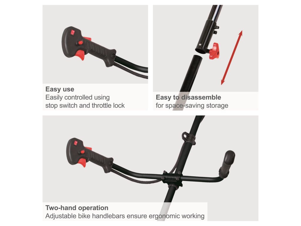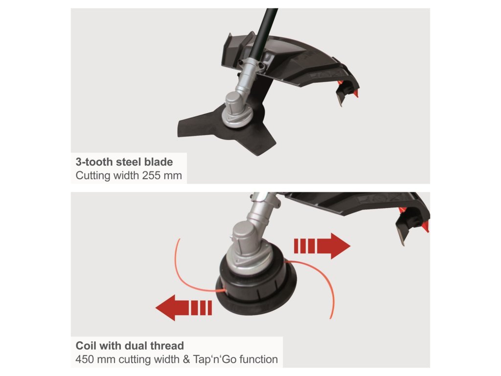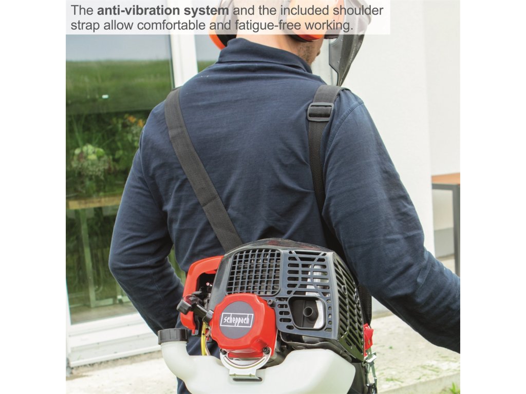 BCH 5200 PB - křovinořez s benzinovým motorem 52 cm3 Full Crank technologie motoru Silný benzínový křovinořez Scheppach BCH 5200 PB je poctivě vyrobený stroj ideální i na náročné práce kolem domu a zahrady. Díky možnosti zvolit žací hlavu s velkým záběrem nebo ostrý třízubý nůž, můžete lehce pokosit vysokou trávu na louce nebo zlikvidovat drobné nálety v lese či sadu. Motor o objemu 52 cm3 dává křovinořezu stále dostatek výkonu a jeho antivibrační uložení významně tlumí nepříjemné vibrace. Je vyroben technologií „Full Crank“, kdy má, stejně jako profesionální stroje, klikovou hřídel uloženou ve dvou ložiscích. To mu dává výrazně delší životnost. Široká antivibrační řídítka zaručí snadné vedení a ovládání stroje. Moderní karburátor bude vždy spolehlivě dodávat benzín i při práci ve velkých náklonech, například když pracujete v příkrém svahu. Další výbava zahrnuje dělenou hřídel pro snadné skladování i transport a pohodlný dvouramenný popruh.Případné bezpečnostní pokyny, výstrahy a upozornění jsou součástí návodu k obsluze, který je k dispozici v sekci KE STAŽENÍ. Kontaktní údaje výrobce / dovozce / zplnomocněného zástupce výrobce v EU: Scheppach GmbH Günzburger Str. 69, 89335 Ichenhausen, Germany email: service@scheppach.comDoplňkové parametry