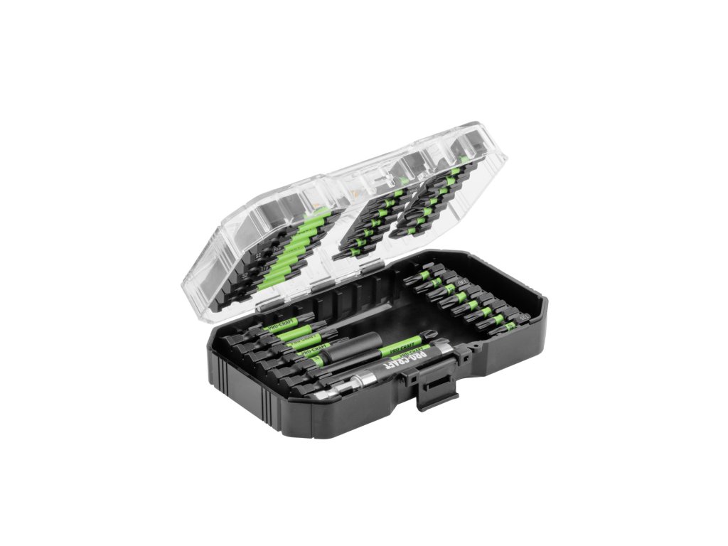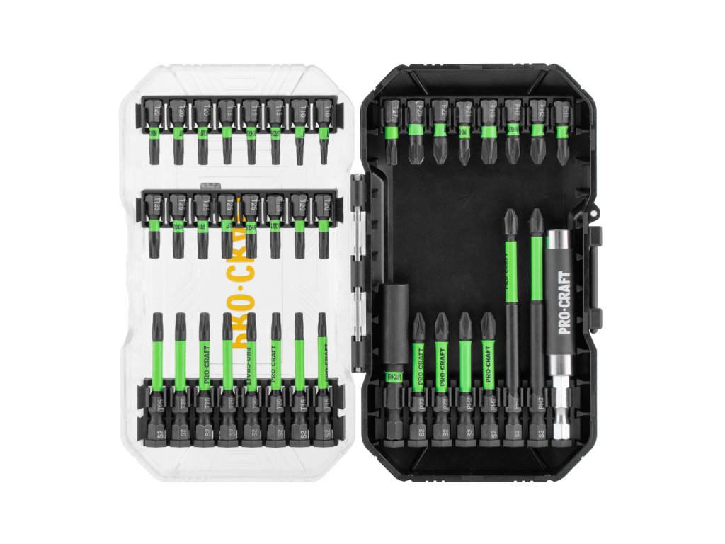 41-dílná sada rázových bitů Procraft IBS-41. Vlastnosti- fosfátový povlak, vysoce kvalitní ocel ,,CrV-S2", silný magnet, torzní zóna.