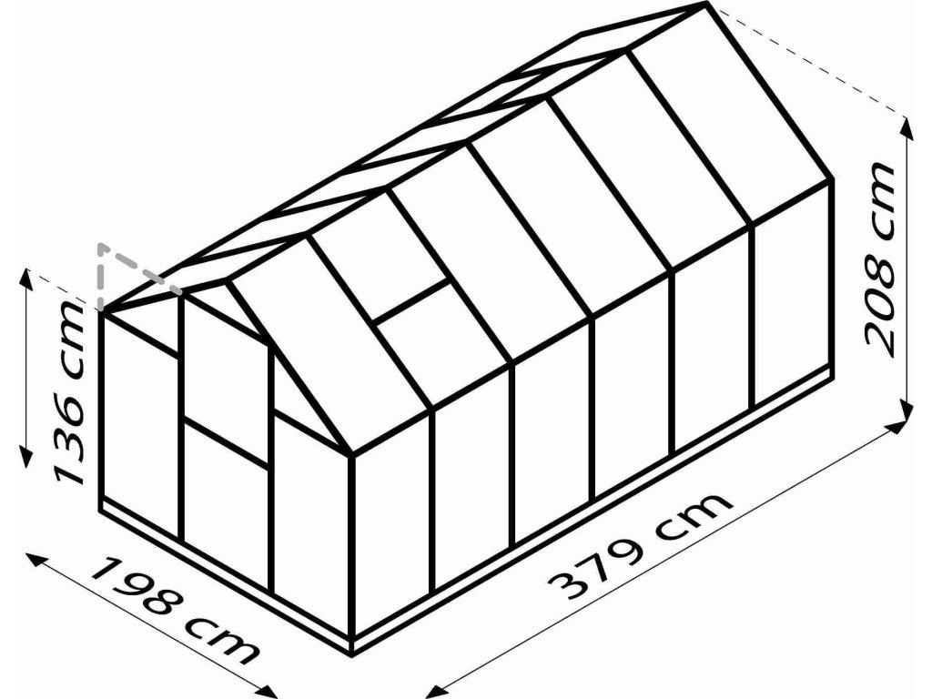 - vnější rozměry š 1,98 x d 3,79 x v 2,08 m
