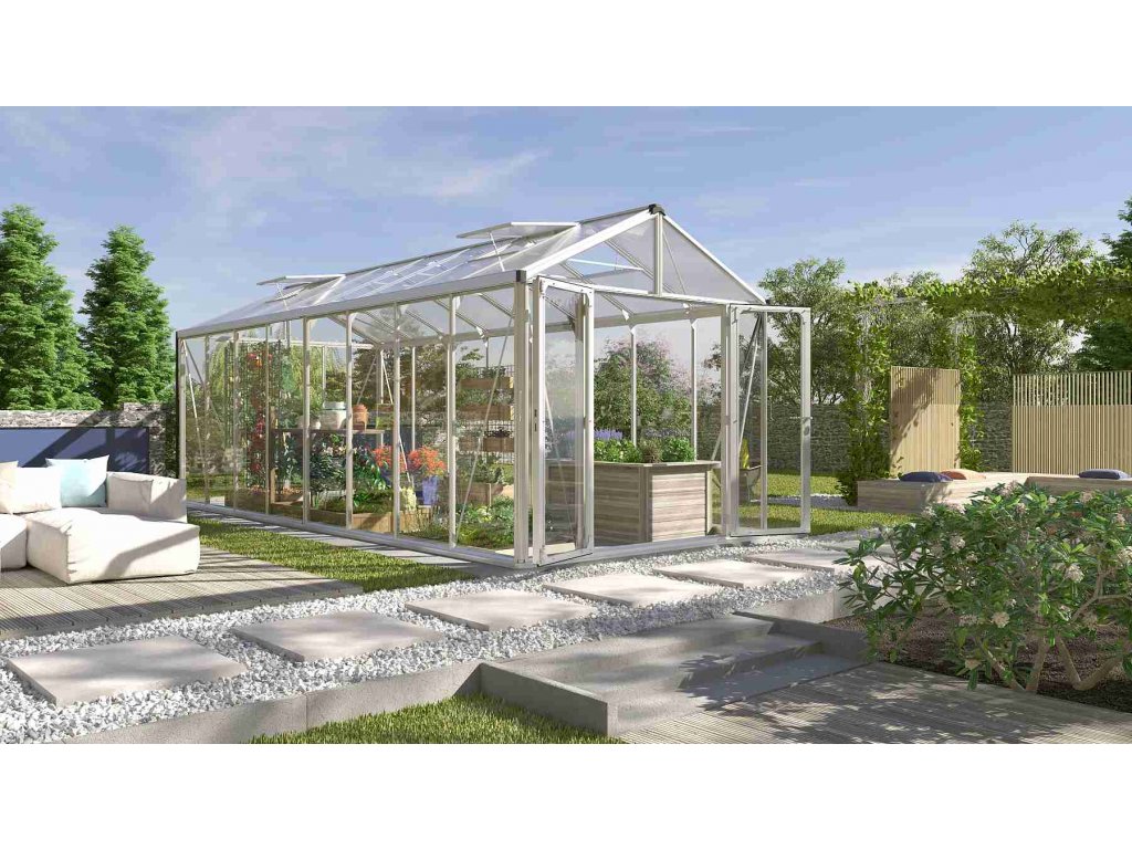 skleník VITAVIA ZEUS COMFORT 15700 sklo 3 mm + PC 10 mm stříbrný LG3720
