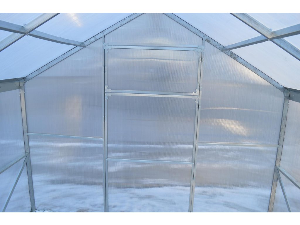Velmi robustní konstrukce, 100% spolehlivost a jednoduchá montáž. Tento masivní ocelový skleník je určen pro zákazníky, kteří chtějí mít klidné spaní i při dnešním nejistém počasí. Skleník LANITPLAST DOMIK má rozteč nosných profilů 100 cm od sebe + nadstandardní podpěry pro polykarbonát ve střeše i v bočních stěnách. Skleník je vyrobený z galvanicky pozinkované ocelové obdélníkové trubky průřezu 40 x 20 mm o síle stěny 0,85 - 1,05 mm. Obě čela skleníku jsou opatřena jednokřídlými dvoudílnými dveřmi na pantech, kdy horní (menší) křídlo je možné použít jako ventilační okénko. Skleník je průchozí.