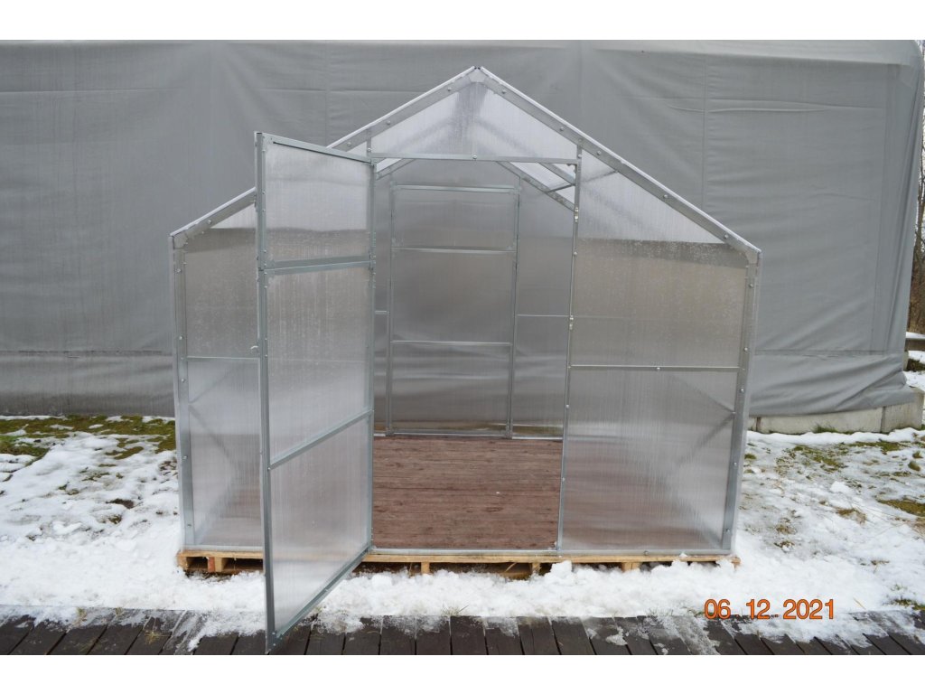 Obsahem dodávky je kompletní skleník = nosná konstrukce o rozměru 2,6 x 2 m (včetně obou dveří), veškeré potřebné spojovací prvky + polykarbonátové desky. Ke skleníku je možné dokoupit řadu doplňků - střešní okna, regály, teploměry, vlhkoměry. Skleník v základu nepotřebuje žádnou podezdívku, protože konstrukce skleníku obsahuje kotvy pro zapuštění do země (ideální je zabetonování kotev) do hloubky cca 20 - 25 cm. Nebo je možné skleník přišroubovat k jakékoliv podezdívce případně dřevěnému rámu. Kotvy je možné do země i pouze zasypat a silně udusat, ale v ČR a SR toto řešení vzhledem k silným letním bouřkám nedoporučujeme.