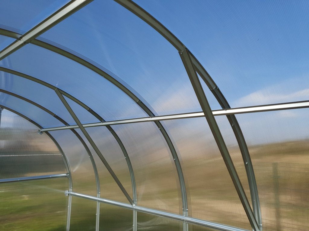 - 6 vnitřních podpěr obloukové konstrukce výrazně zvyšujících odolnost skleníku proti sněhu