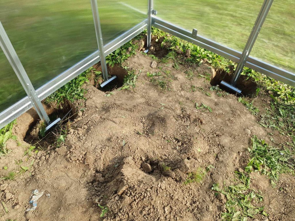 Skleník nepotřebuje žádnou podezdívku, protože konstrukce skleníku je připravena na zapuštění do země do hloubky cca 20 - 25 cm. Do děr v zemi se zasunou kotevní profily ve tvaru obráceného velkého písmene T, které se zabetonují. Skleník lze ukotvit i na dřevěnou / zděnou / betonovou podezdívku, vyžaduje to však drobné kutilské zásahy a především domácí vyrobení atypických plechových L úchytek pro přišroubování profilů k podezdívce (výrobce ukotvení skleníku na podezdívku nepředpokládá). Bližší popis ukotvení skleníku do země nebo na podezdívku naleznete v souboru "Jak ukotvit obloukový skleník", který je umístěný na záložce Návody.