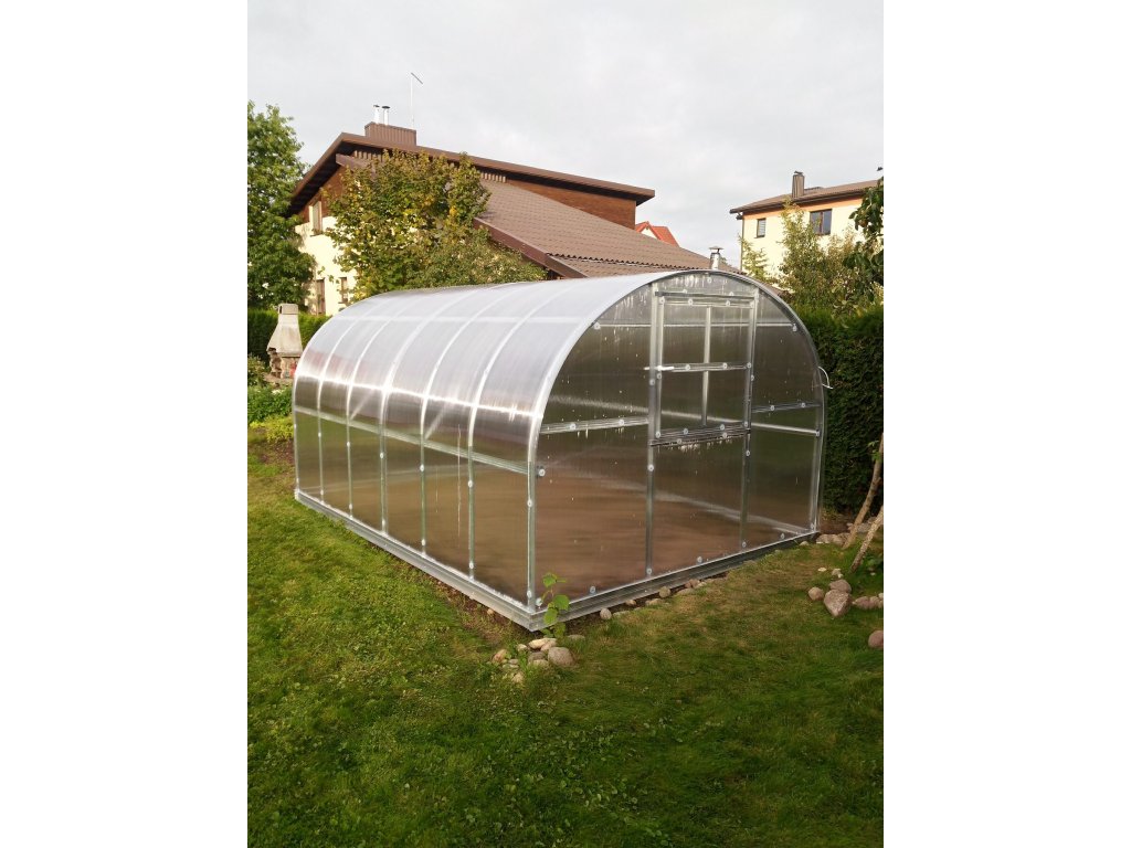 | obloukový skleník LANITPLAST TIBERUS | pozinkovaný ocelový profil 1mm, rozteč oblouků 100 cm, dvojité dveře vpředu, ventilační okno vzadu, prosklení nutno vyřezat z dodaných polykarbonátových desek, možnost montáže střešního okna - ano |