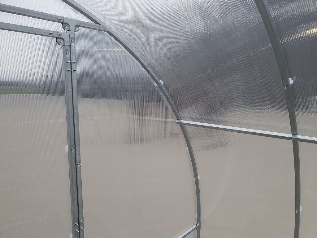 Velmi robustní konstrukce, 100% spolehlivost a jednoduchá montáž. Bytelný skleník pro zákazníky, kteří chtějí mít klidné spaní i při nejistém větrném počasí dnešní doby. Skleník má zvýšenou hustotu nosných oblouků na pouhých 67 cm od sebe, čímž se výrazně zvýšila odolnost celé konstrukce. Nosné oblouky jsou vyrobeny ze žárově pozinkované ocelové čtvercové trubky průřezu 20 x 20 mm a síle stěny cca 1 mm. Jednotlivé čtvercové trubky se do sebe zasouvají (systém podobný stanovým tyčkám a stanové konstrukci, jen výrazně mohutnější) a spoje se zajistí šroubem. Plastový polykarbonátový plášť je vyrobený z prémiového britského polykarbonátu se smluvní zárukou 10 let na nerozbitnost krupobitím. Jednotlivé profily se vzájemně sešroubují a po jejich sestavení vznikne velmi stabilní oblouková konstrukce bez nutnosti stavby skleníkové podezdívky. Skleník je vybaven kotvami přímo do země. Montáž skleníku zvládnete svépomocí ve dvou až třech osobách. V půdě se zahradní skleník upevňuje zakopáváním patek konstrukce do země, případně jejich zalitím do betonu (doporučujeme).