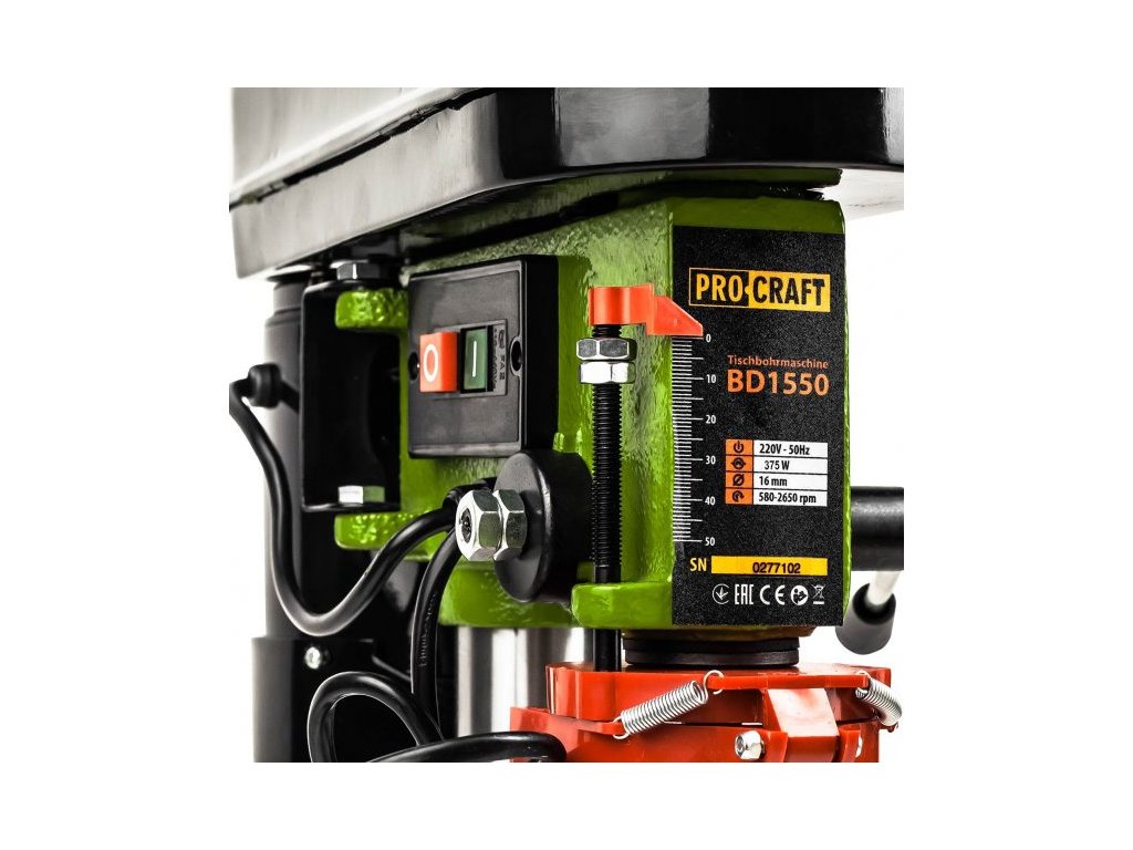 Sloupová vrtačka Procraft BD1550 je určena k vrtání do dřeva, kovu nebo plastů. Regulace otáček v 5 rychlostních stupních vrtání umožňuje nastavení optimálních parametrů při práci s různými materiály. Silný motor s výkonem 375 W a vysokých otáček až 2650 zaručuje dlouhou bezporuchovou práci. Ozubené sklíčidlo umožňuje upnutí vrtáků a stopkových nástrojů do průměru 16 mm. Možnost natáčení pracovního stolu až o 360° a naklápění do úhlu ±45°. Balení karton.
